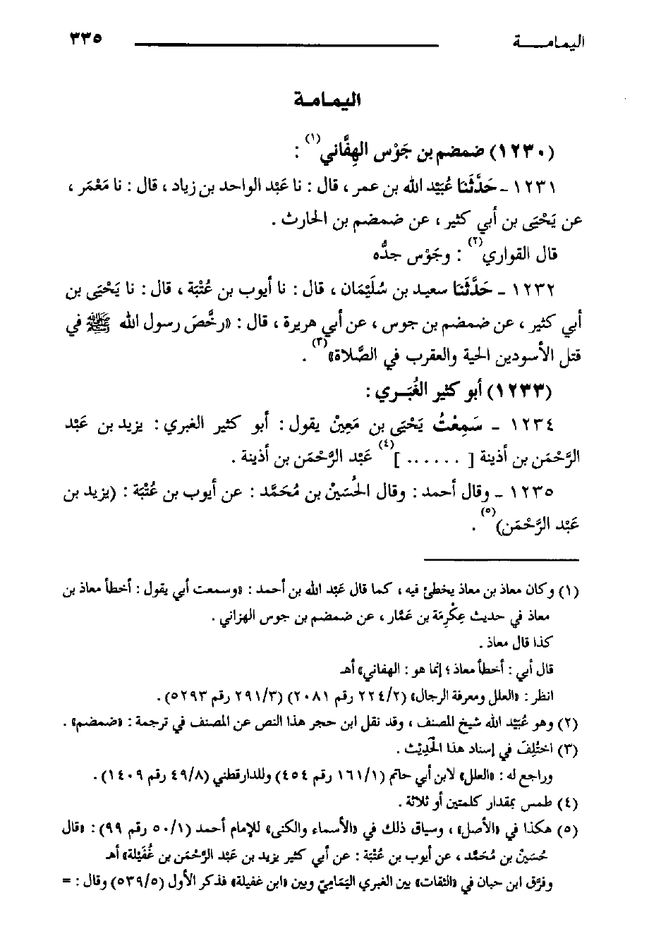 ١٢٣١- حَدَّثَنا عُبَيْد اللَّهِ بْنُ عُمَرَ, قال: حَدَّثَنَا عَبْد الْوَاحِدِ بْنُ زِيَادٍ، قال: حدثنا مَعْمَر, عَنْ يَحْيَى بْنِ أَبِي كثير، عَنْ ضمضم بْن الحارث.