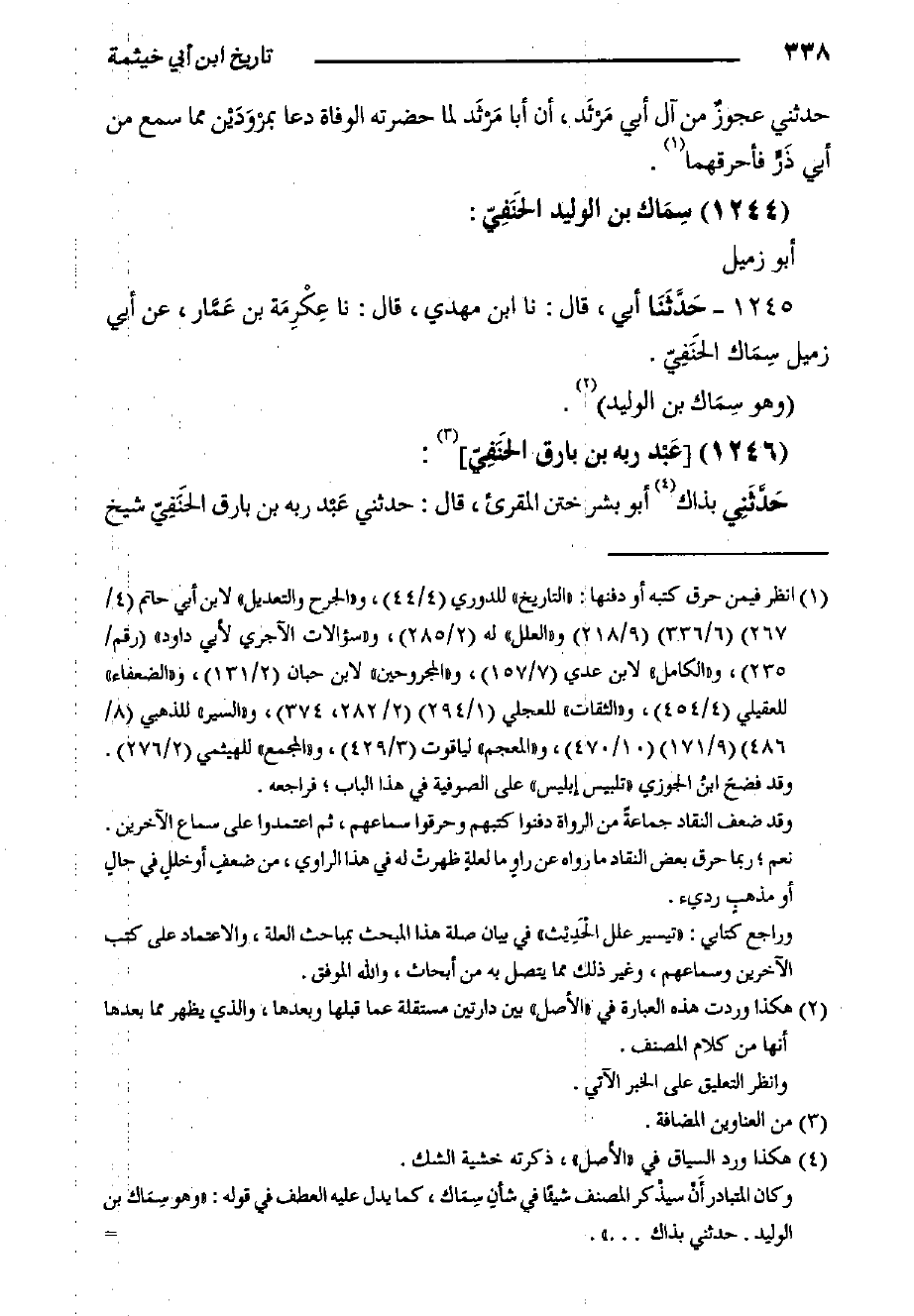 ١٢٤٥ - حَدَّثَنَا أبي, قال: حدثنا ابن مهدي, قال: حدثنا عِكْرِمَة بْن عَمَّار, عَنْ أبي زميل سِمَاك الحَنَفِيّ.
