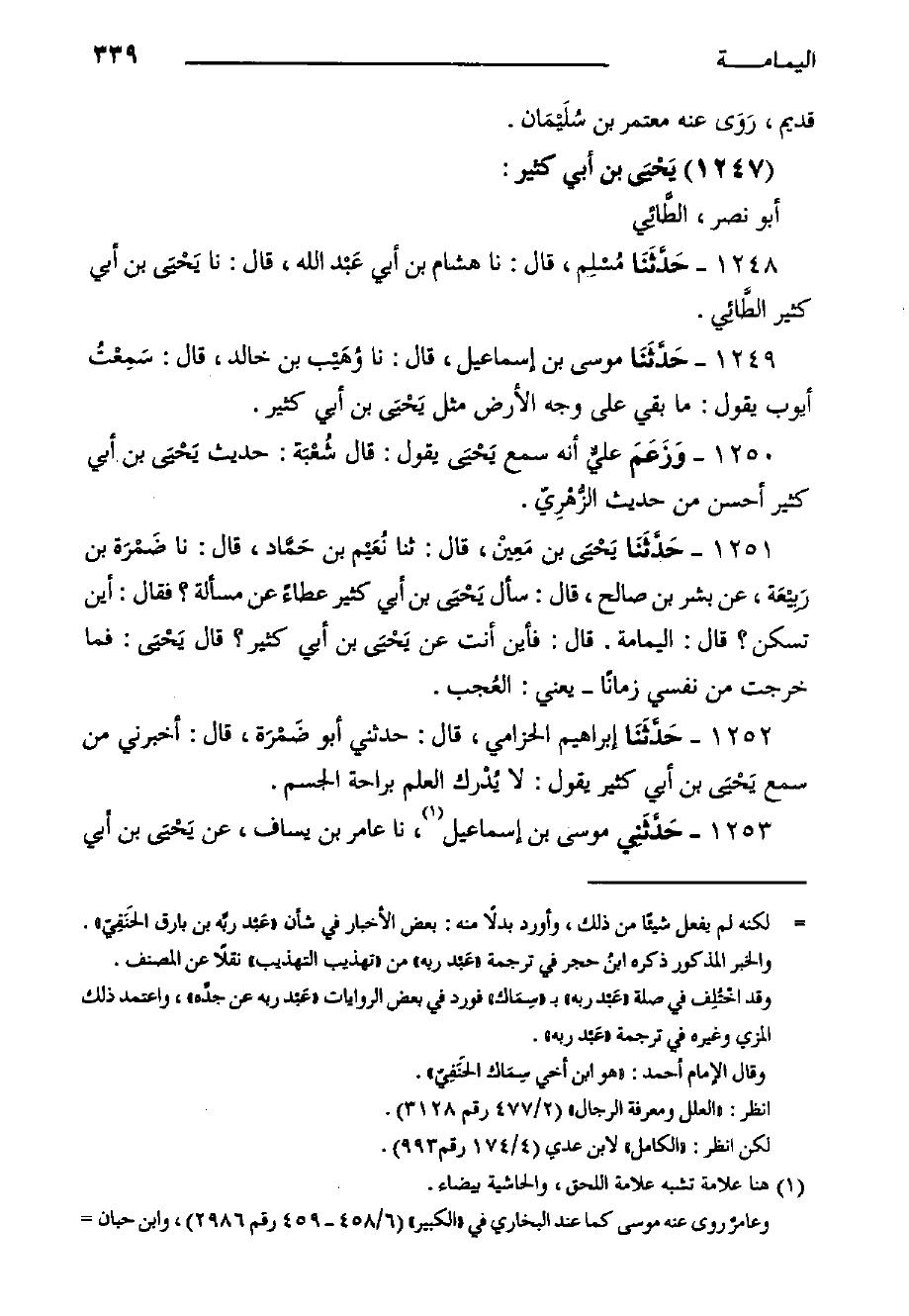 ١٢٤٨ - حَدَّثَنَا مُسْلِم, قال: حَدَّثَنَا هشام بْن أَبِي عَبْد الله, قال: حَدَّثَنَا يَحْيَى بْنُ أبي كثير الطَّائِي.