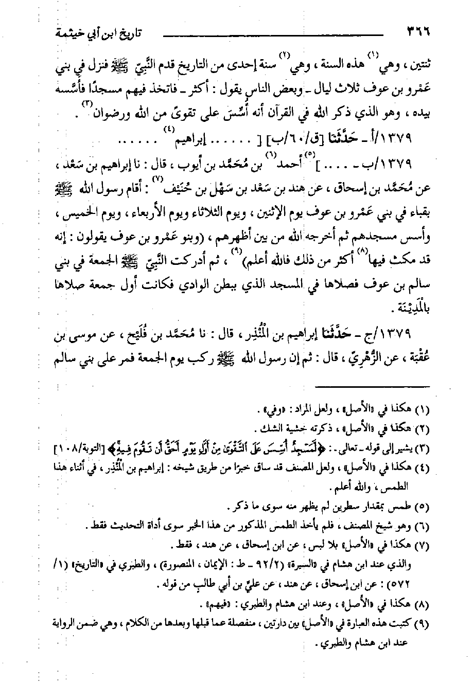 ١٣٧٩/ج- حَدَّثَنا إِبْرَاهِيمُ بْنُ الْمُنْذِر، قَالَ: حدثنا مُحَمَّد بْن فُلَيْح، عَنْ مُوسَى بْن عُقْبَة، عَنِ الزُّهْرِيّ، قَالَ: ثُمَّ إِنَّ رَسُولَ اللَّهِ صَلَّى اللَّهُ عَلَيْهِ وَسَلَّمَ ركب يوم الجمعة فمر على بني سال