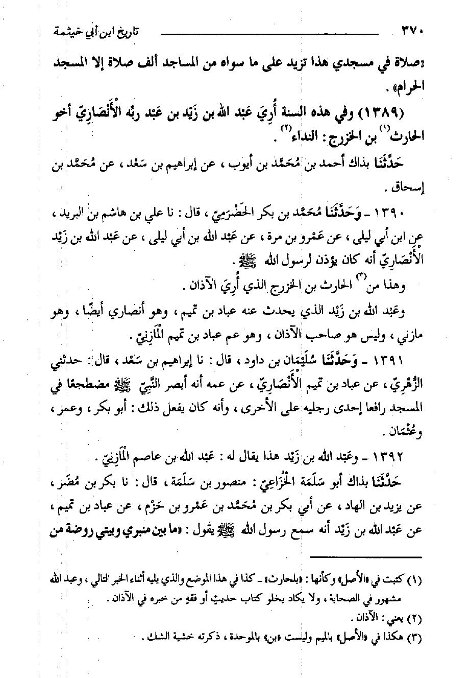 ١٣٨٩- وفي هذه السنة أُرِيَ عَبْد اللَّه بْن زَيْد بْنِ عَبْد ربِّه الأَنْصَارِيّ أخو الحارث بْن الخزرج: النداء.