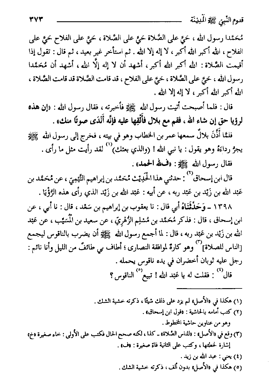 قَالَ ابْن إِسْحَاقَ: حَدَّثَنِي هَذَا الْحَدِيْث مُحَمَّد بْن إِبْرَاهِيمَ التَّيْمِيّ، عَنْ مُحَمَّد بْن عَبْد اللَّهِ بْن زَيْد بْنِ عَبْد ربه، عَنْ أَبِيهِ: عَبْد اللَّهِ بْن زَيْد الذي رأى هذه الرُّؤْيَا.