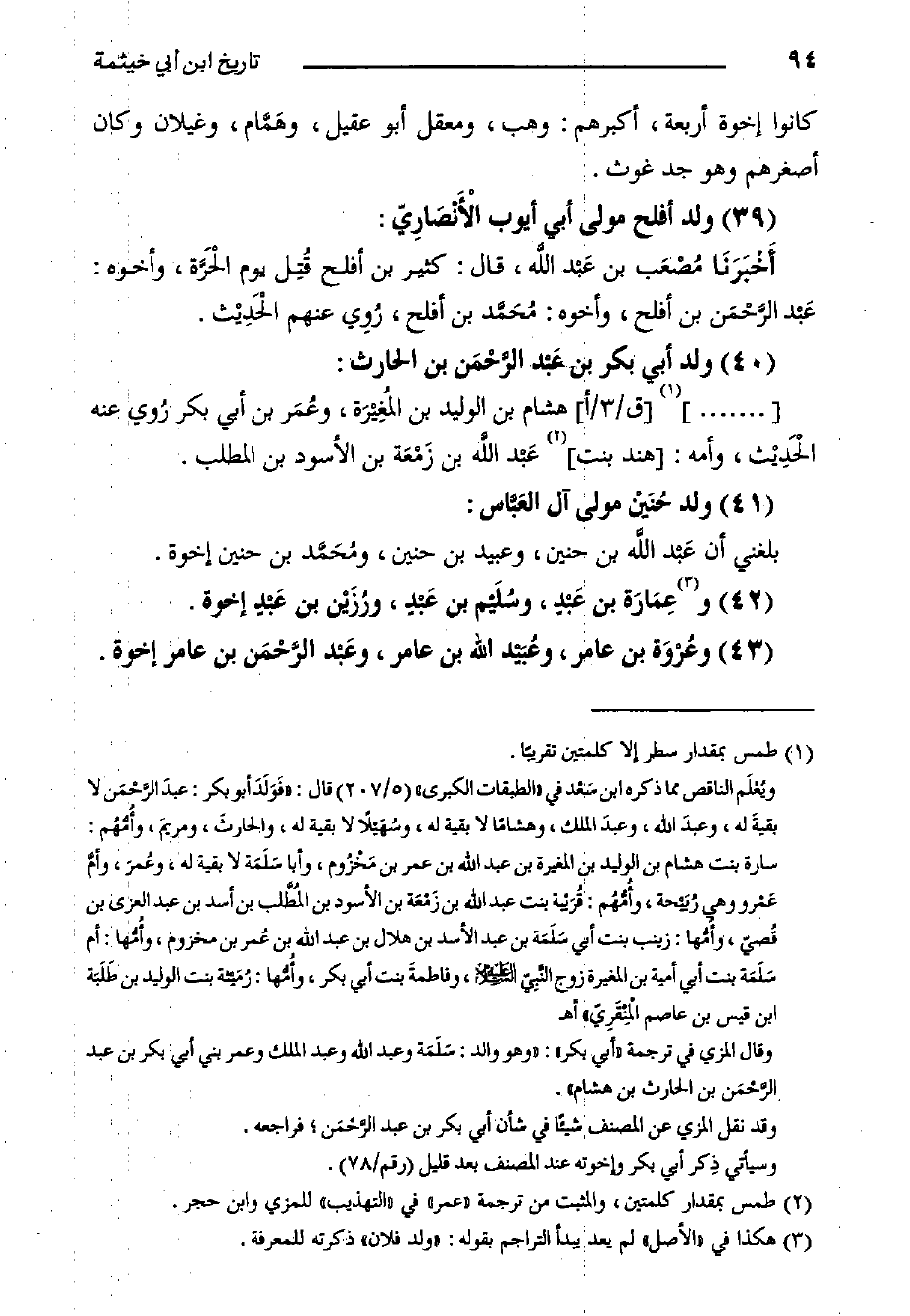 كتاب التاريخ الكبير لابن أبي خيثمة - السفر الثالث - ط الفاروق (اسم الجزء: 1)