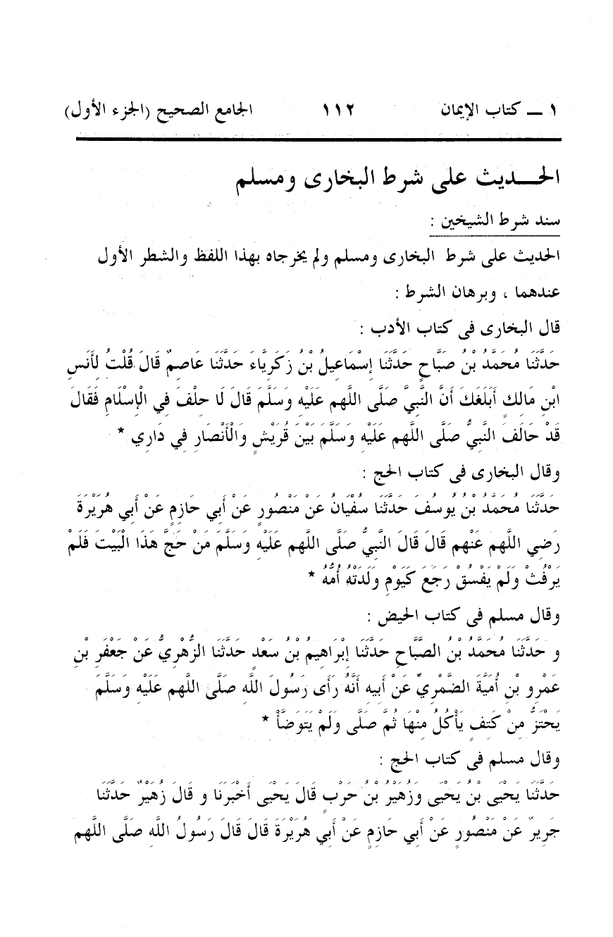 كتاب الجامع الصحيح فيما كان على شرط الشيخين أو أحدهما ولم يخرجاه (اسم الجزء: 1)