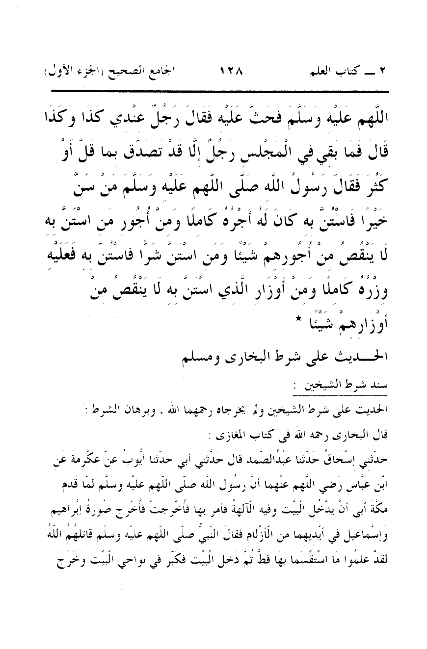 اللَّهم عَلَيْهِ وَسَلَّمَ فَحَثَّ عَلَيْهِ فَقَالَ رَجُلٌ عِنْدِي كَذَا وَكَذَا قَالَ فَمَا بَقِيَ فِي الْمَجْلِسِ رَجُلٌ إِلَّا قَدْ تَصَدَّقَ بِمَا قَلَّ أَوْ كَثُرَ فَقَالَ رَسُولُ اللَّهِ صَلَّى اللَّهم عَلَيْهِ وَسَلَّمَ مَنْ سَنَّ خَيْرًا فَاسْتُنَّ بِهِ كَانَ لَهُ أَجْرُهُ كَامِلًا وَمِنْ أُجُورِ مَنِ اسْتَنَّ بِهِ لَا يَنْقُصُ مِنْ أُجُورِهِمْ شَيْئًا وَمَنِ اسْتَنَّ شَرًّا فَاسْتُنَّ بِهِ فَعَلَيْهِ وِزْرُهُ كَامِلًا وَمِنْ أَوْزَارِ الَّذِي اسْتَنَّ بِهِ لَا يَنْقُصُ مِنْ أَوْزَارِهِمْ شَيْئًا *