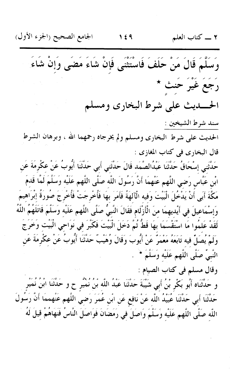 كتاب الجامع الصحيح فيما كان على شرط الشيخين أو أحدهما ولم يخرجاه (اسم الجزء: 1)