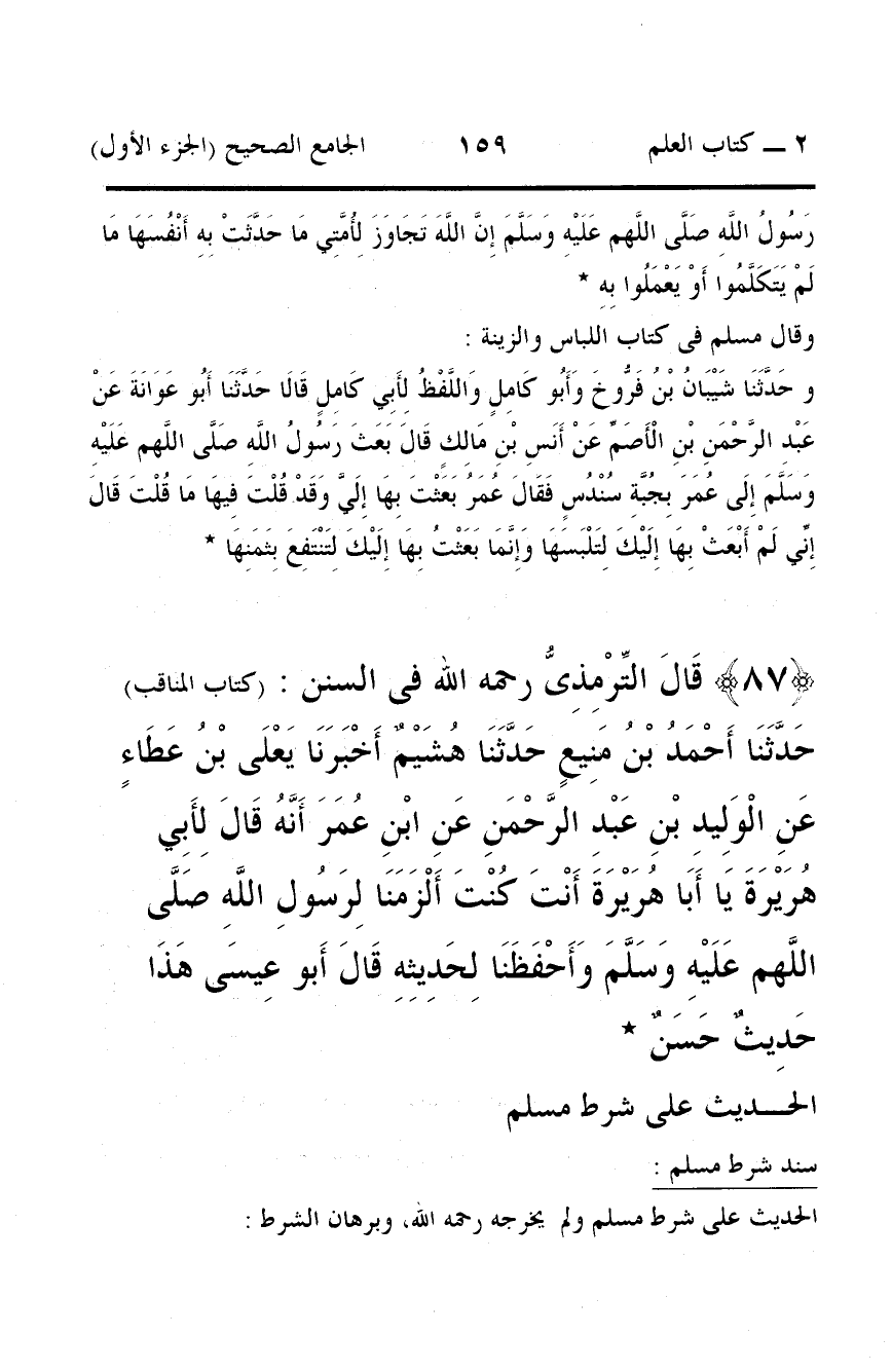 87 - قَالَ التِّرْمِذِىُّ رحمه الله فى السنن: (كتاب المناقب) حَدَّثَنَا أَحْمَدُ بْنُ مَنِيعٍ حَدَّثَنَا هُشَيْمٌ أَخْبَرَنَا يَعْلَى بْنُ عَطَاءٍ عَنِ الْوَلِيدِ بْنِ عَبْدِ الرَّحْمَنِ عَنِ ابْنِ عُمَرَ أَنَّهُ قَالَ لِأَبِي هُرَيْرَةَ يَا أَبَا هُرَيْرَةَ أَنْتَ كُنْتَ أَلْزَمَنَا لِرَسُولِ اللَّهِ صَلَّى اللَّهم عَلَيْهِ وَسَلَّمَ وَأَحْفَظَنَا لِحَدِيثِهِ قَالَ أَبو عِيسَى هَذَا حَدِيثٌ حَسَنٌ *