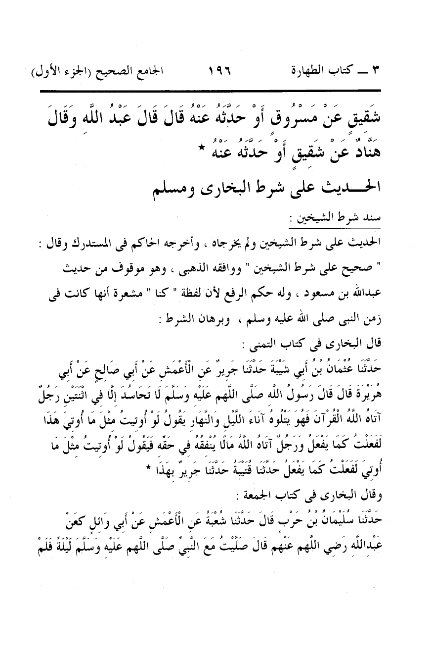 كتاب الجامع الصحيح فيما كان على شرط الشيخين أو أحدهما ولم يخرجاه (اسم الجزء: 1)