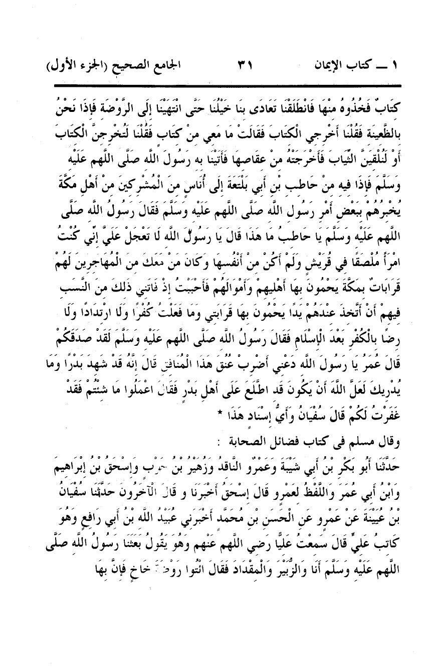 كِتَابٌ فَخُذُوهُ مِنْهَا فَانْطَلَقْنَا تَعَادَى بِنَا خَيْلُنَا حَتَّى انْتَهَيْنَا إِلَى الرَّوْضَةِ فَإِذَا نَحْنُ بِالظَّعِينَةِ فَقُلْنَا أَخْرِجِي الْكِتَابَ فَقَالَتْ مَا مَعِي مِنْ كِتَابٍ فَقُلْنَا لَتُخْرِجِنَّ الْكِتَابَ أَوْ لَنُلْقِيَنَّ الثِّيَابَ فَأَخْرَجَتْهُ مِنْ عِقَاصِهَا فَأَتَيْنَا بِهِ رَسُولَ اللَّهِ صَلَّى اللَّهم عَلَيْهِ وَسَلَّمَ فَإِذَا فِيهِ مِنْ حَاطِبِ بْنِ أَبِي بَلْتَعَةَ إِلَى أُنَاسٍ مِنَ الْمُشْرِكِينَ مِنْ أَهْلِ مَكَّةَ يُخْبِرُهُمْ بِبَعْضِ أَمْرِ رَسُولِ اللَّهِ صَلَّى اللَّهم عَلَيْهِ وَسَلَّمَ فَقَالَ رَسُولُ اللَّهِ صَلَّى اللَّهم عَلَيْهِ وَسَلَّمَ يَا حَاطِبُ مَا هَذَا قَالَ يَا رَسُولَ اللَّهِ لَا تَعْجَلْ عَلَيَّ إِنِّي كُنْتُ امْرَأً مُلْصَقًا فِي قُرَيْشٍ وَلَمْ أَكُنْ مِنْ أَنْفُسِهَا وَكَانَ مَنْ مَعَكَ مِنَ الْمُهَاجِرِينَ لَهُمْ قَرَابَاتٌ بِمَكَّةَ يَحْمُونَ بِهَا أَهْلِيهِمْ وَأَمْوَالَهُمْ فَأَحْبَبْتُ إِذْ فَاتَنِي ذَلِكَ مِنَ النَّسَبِ فِيهِمْ أَنْ أَتَّخِذَ عِنْدَهُمْ يَدًا يَحْمُونَ بِهَا قَرَابَتِي وَمَا فَعَلْتُ كُفْرًا وَلَا ارْتِدَادًا وَلَا رِضًا بِالْكُفْرِ بَعْدَ الْإِسْلَامِ فَقَالَ رَسُولُ اللَّهِ صَلَّى اللَّهم عَلَيْهِ وَسَلَّمَ لَقَدْ صَدَقَكُمْ قَالَ عُمَرُ يَا رَسُولَ اللَّهِ دَعْنِي أَضْرِبْ عُنُقَ هَذَا الْمُنَافِقِ قَالَ إِنَّهُ قَدْ شَهِدَ بَدْرًا وَمَا يُدْرِيكَ لَعَلَّ اللَّهَ أَنْ يَكُونَ قَدِ اطَّلَعَ عَلَى أَهْلِ بَدْرٍ فَقَالَ اعْمَلُوا مَا شِئْتُمْ فَقَدْ غَفَرْتُ لَكُمْ قَالَ سُفْيَانُ وَأَيُّ إِسْنَادٍ هَذَا *