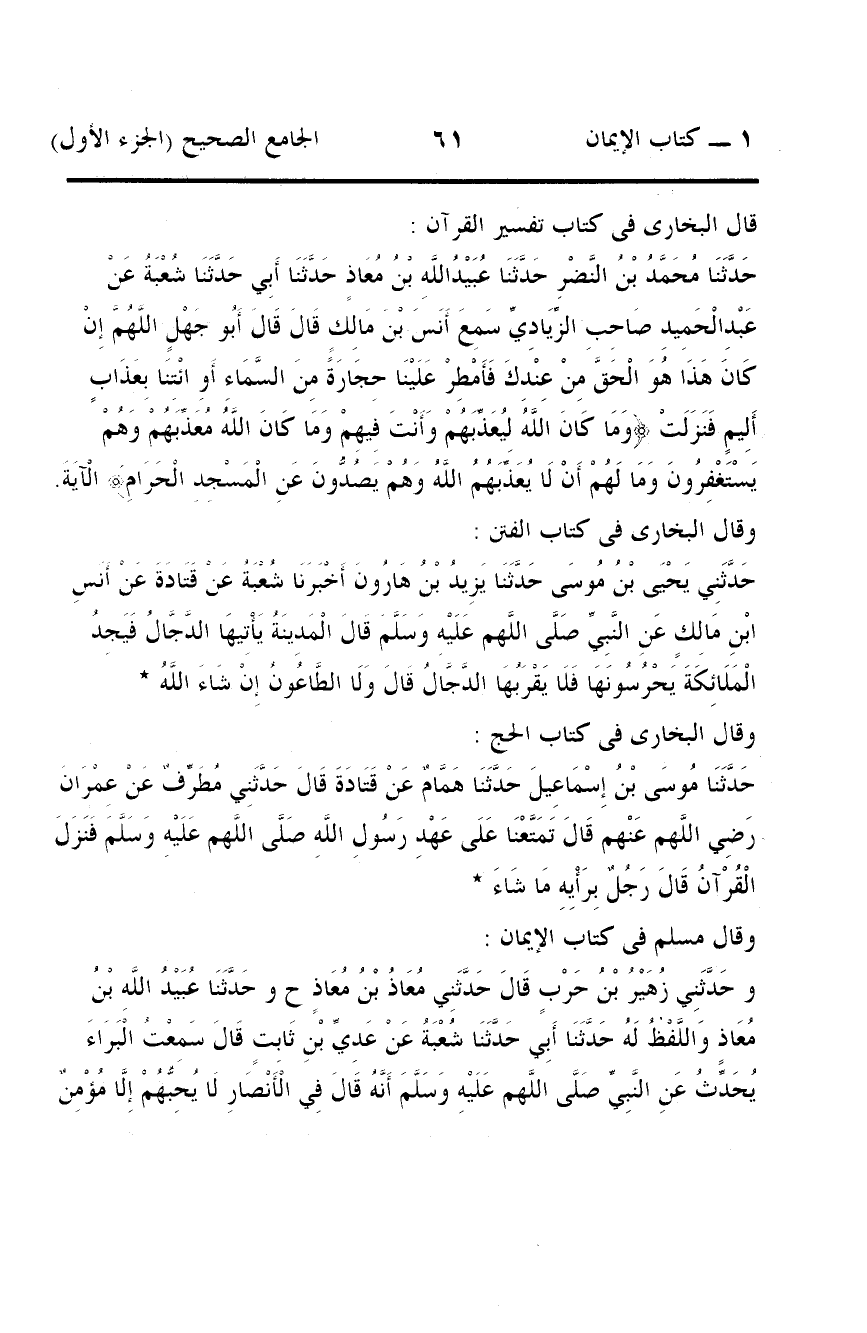 وحَدَّثَنِي زُهَيْرُ بْنُ حَرْبٍ قَالَ حَدَّثَنِي مُعَاذُ بْنُ مُعَاذٍ ح وحَدَّثَنَا عُبَيْدُ اللَّهِ بْنُ مُعَاذٍ وَاللَّفْظُ لَهُ حَدَّثَنَا أَبِي حَدَّثَنَا شُعْبَةُ عَنْ عَدِيِّ بْنِ ثَابِتٍ قَالَ سَمِعْتُ الْبَرَاءَ يُحَدِّثُ عَنِ النَّبِيِّ صَلَّى اللَّهم عَلَيْهِ وَسَلَّمَ أَنَّهُ قَالَ فِي الْأَنْصَارِ لَا يُحِبُّهُمْ إِلَّا مُؤْمِنٌ