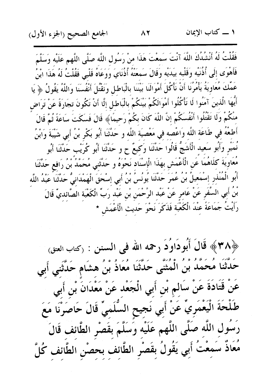 38 - قَالَ أَبُودَاوُدَ رحمه الله فى السنن: (كتاب العتق)