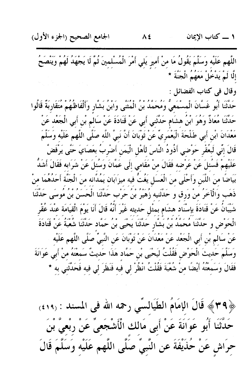 39 - قَالَ الِإمَامُ الطَيَالِسِّي رحمه الله فى المسند: (419)