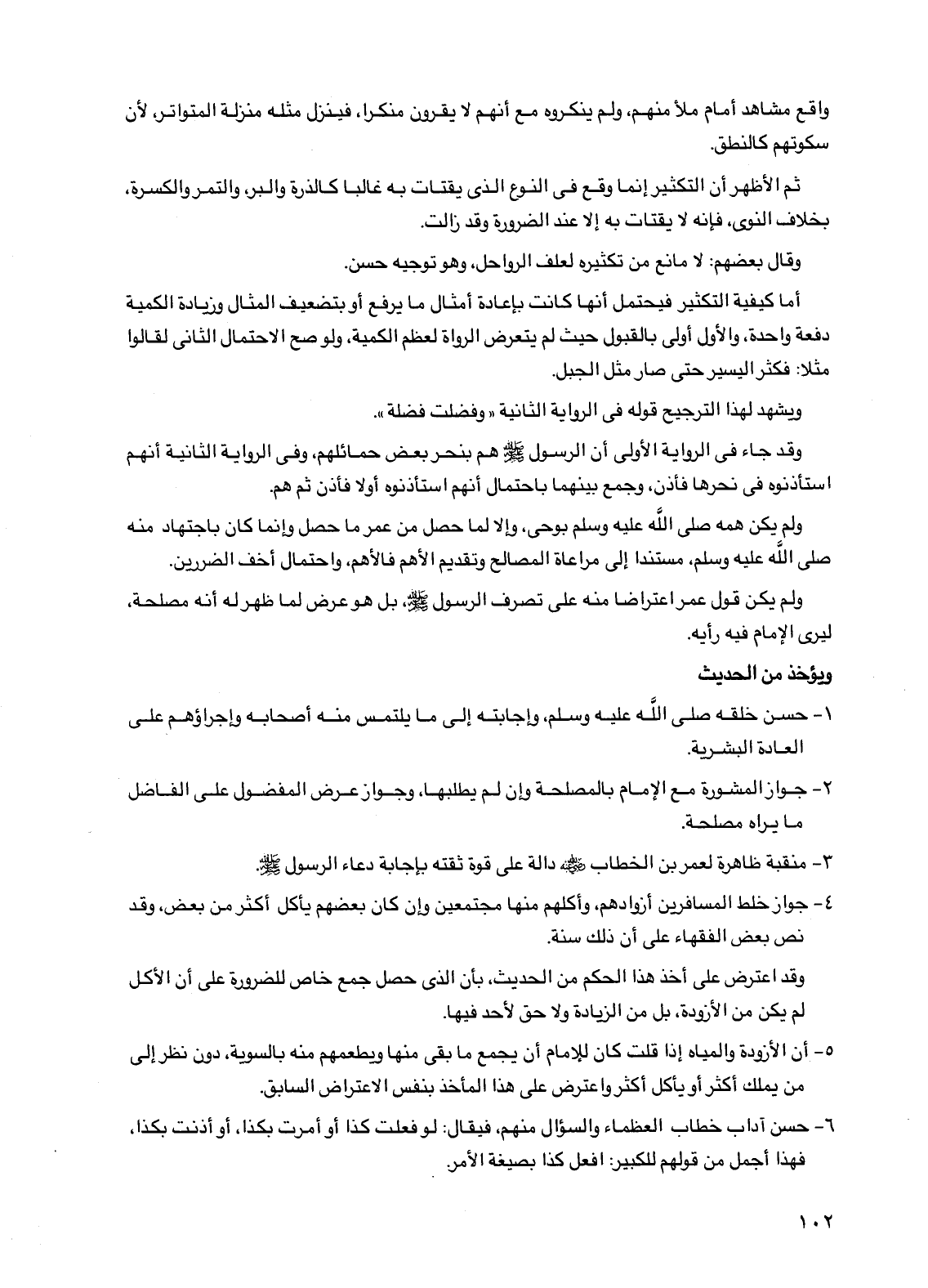 وقد جاء في الرواية الأولى أن الرسول صلى الله عليه وسلم هم بنحر بعض حمائلهم، وفي الرواية الثانية أنهم استأذنوه في نحرها فأذن، وجمع بينهما باحتمال أنهم استأذنوه أولا فأذن ثم هم.