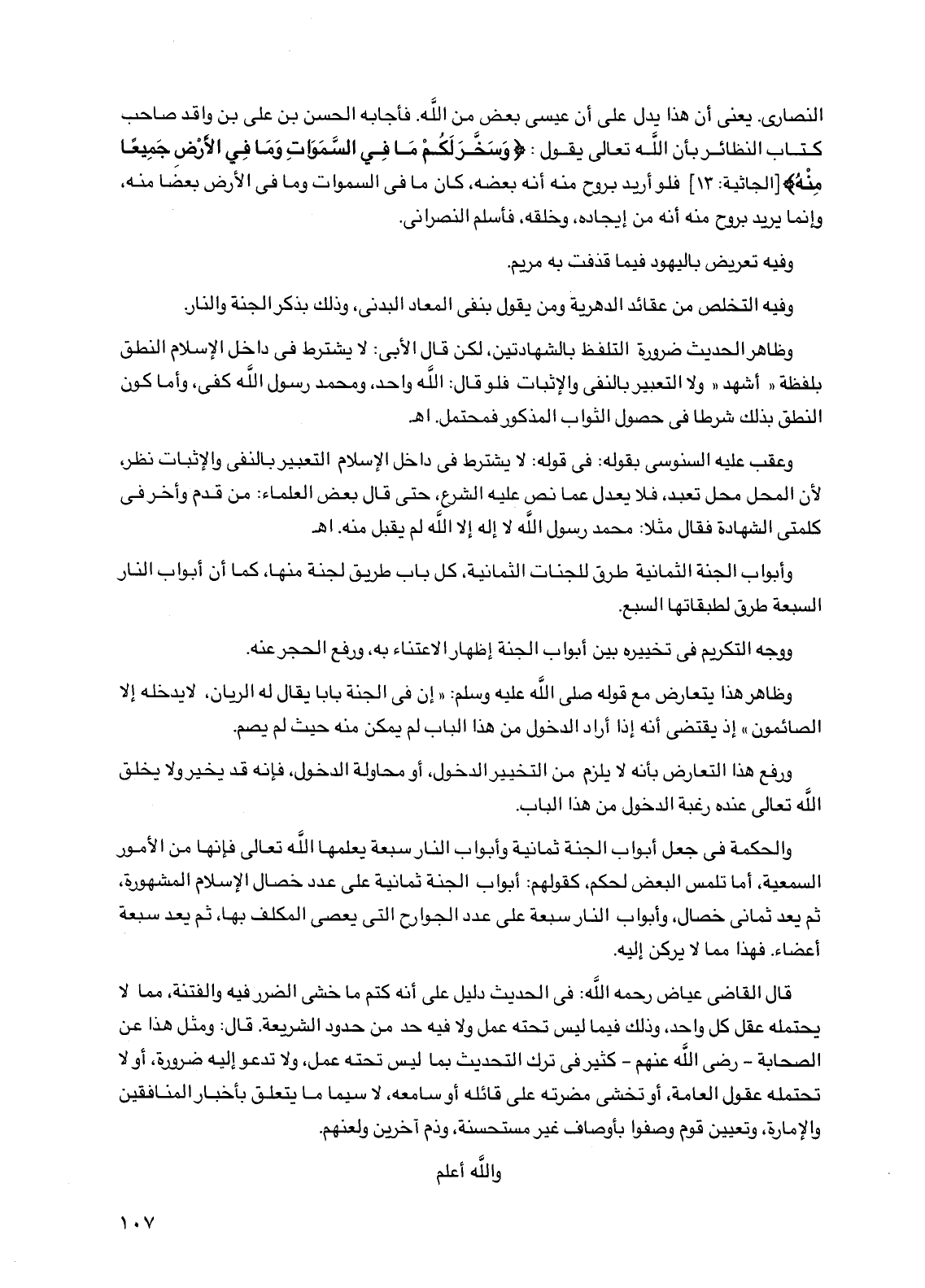 وعقب عليه السنوسي بقوله: في قوله: لا يشترط في داخل الإسلام التعبير بالنفي والإثبات نظر، لأن المحل محل تعبد، فلا يعدل عما نص عليه الشرع، حتى قال بعض العلماء: من قدم وأخر في كلمتي الشهادة فقال مثلا: محمد رسول الله لا إله إلا الله لم يقبل منه. اهـ.