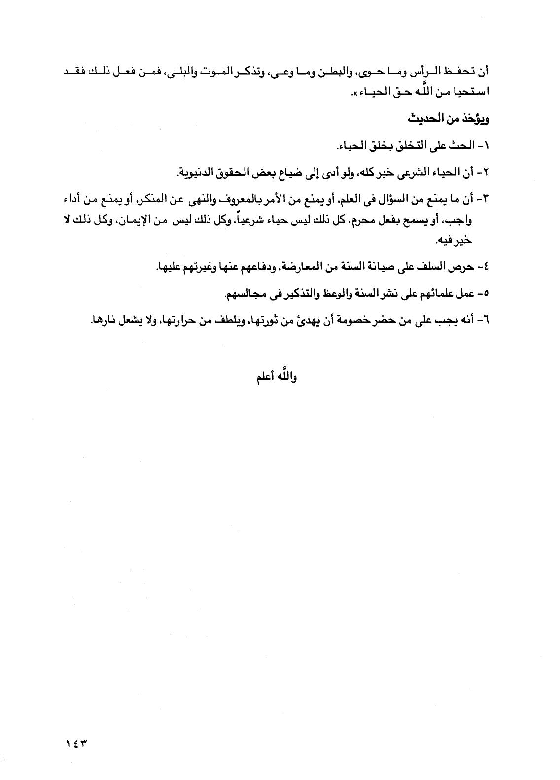 3 - أن ما يمنع من السؤال في العلم، أو يمنع من الأمر بالمعروف والنهي عن المنكر، أو يمنع من أداء واجب، أو يسمح بفعل محرم، كل ذلك ليس حياء شرعيا، وكل ذلك ليس من الإيمان، وكل ذلك لا خير فيه.