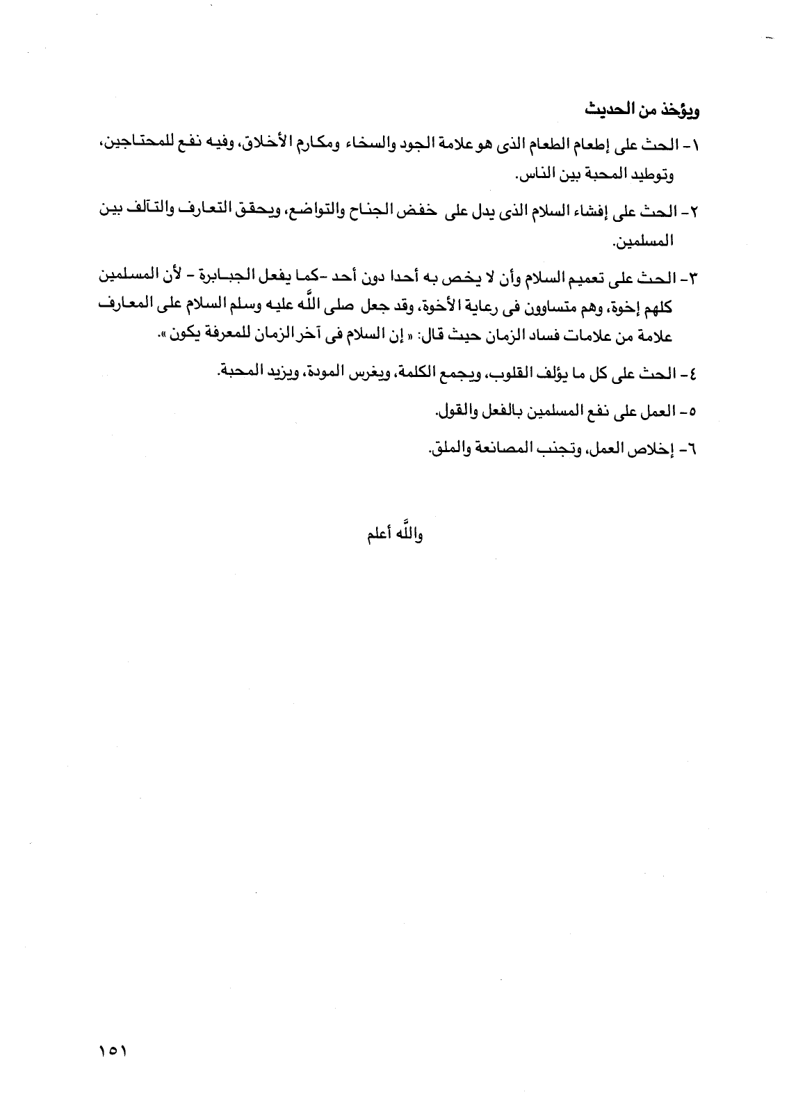 2 - الحث على إفشاء السلام الذي يدل على خفض الجناح والتواضع، ويحقق التعارف والتآلف بين المسلمين.