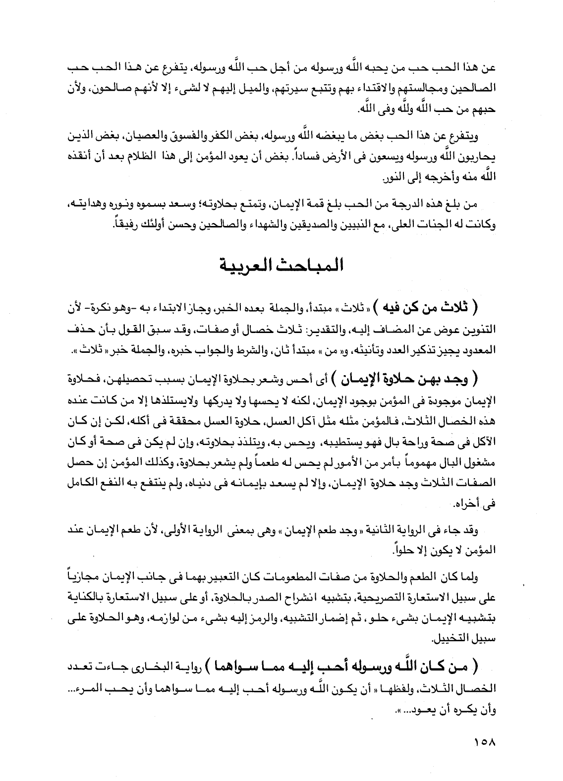 وقد جاء في الرواية الثانية "وجد طعم الإيمان" وهي بمعنى الرواية الأولى، لأن طعم الإيمان عند المؤمن لا يكون إلا حلوا.