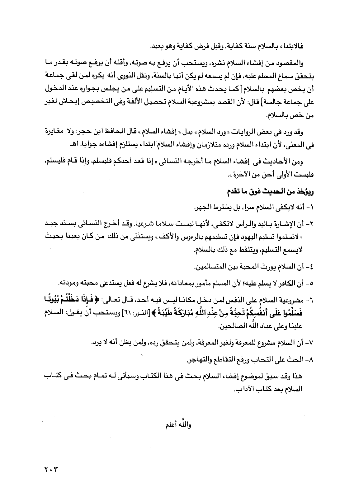 7 - أن السلام مشروع للمعرفة ولغير المعرفة، ولمن يتحقق رده، ولمن يظن أنه لا يرد.