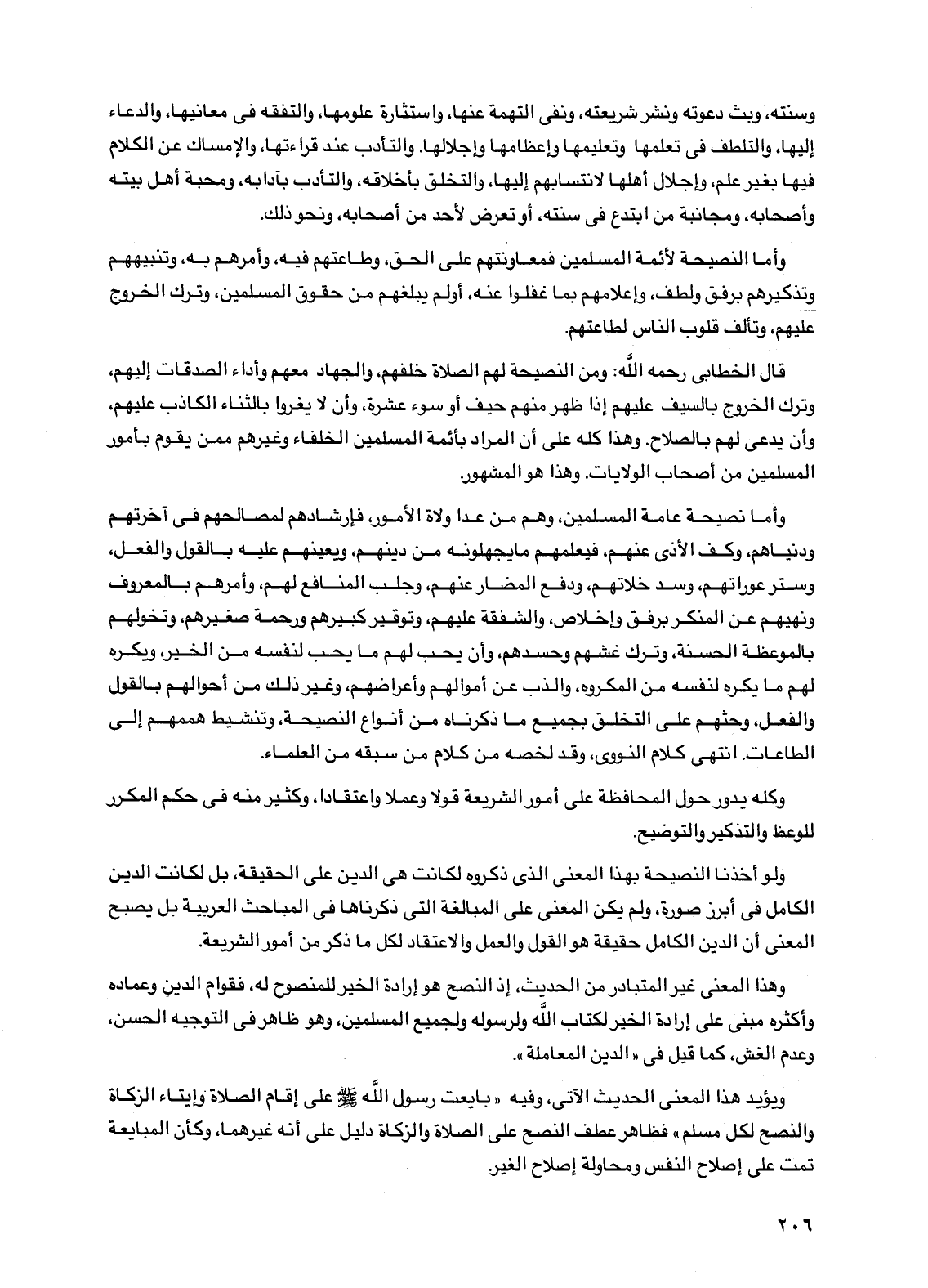 ولو أخذنا النصيحة بهذا المعنى الذي ذكروه لكانت هي الدين على الحقيقة، بل لكانت الدين الكامل في أبرز صورة، ولم يكن المعنى على المبالغة التي ذكرناها في المباحث العربية بل يصبح المعنى أن الدين الكامل حقيقة هو القول والعمل والاعتقاد لكل ما ذكر من أمور الشريعة.