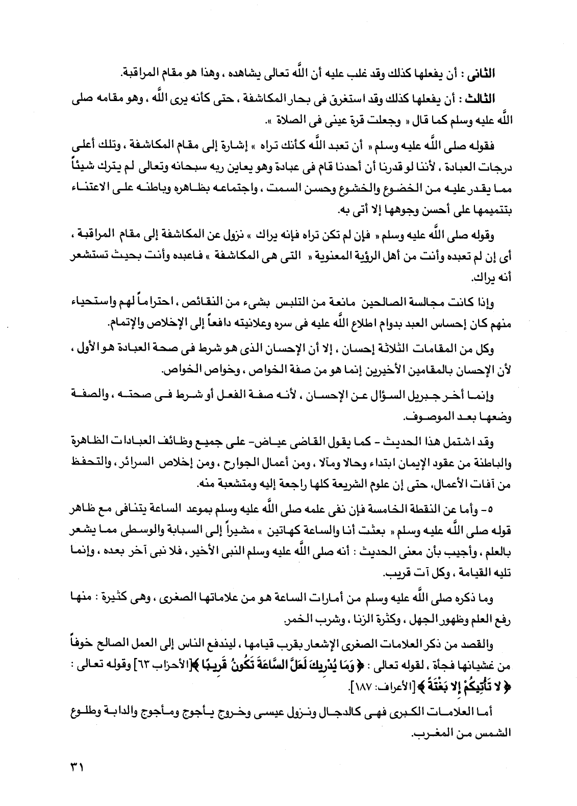 وكل من المقامات الثلاثة إحسان، إلا أن الإحسان الذي هو شرط في صحة العبادة هو الأول، لأن الإحسان بالمقامين الأخيرين إنما هو من صفة الخواص، وخواص الخواص.