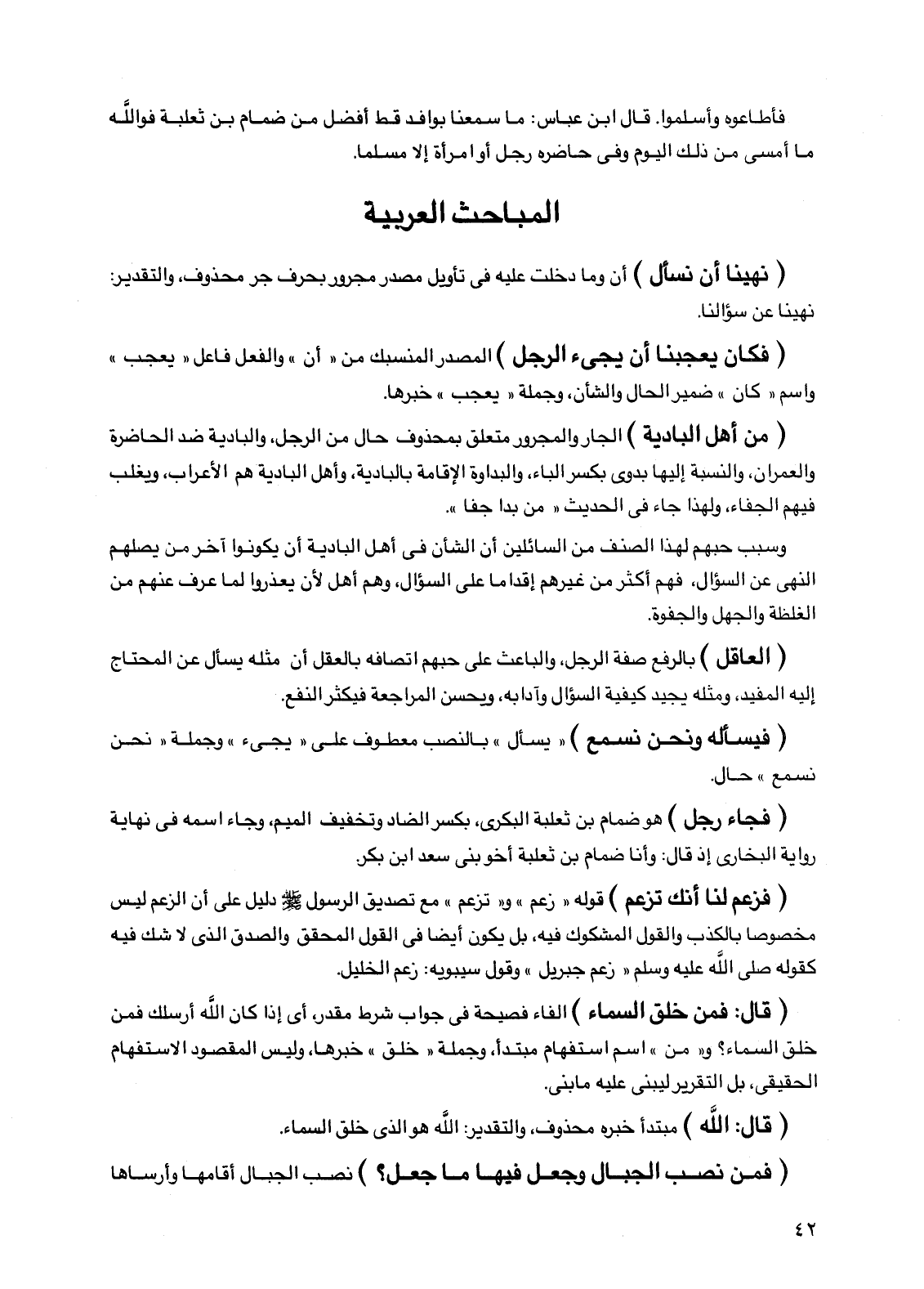 (فجاء رجل) هو ضمام بن ثعلبة البكري، بكسر الضاد وتخفيف الميم، وجاء اسمه في نهاية رواية البخاري إذ قال: وأنا ضمام بن ثعلبة أخو بني سعد بن بكر.