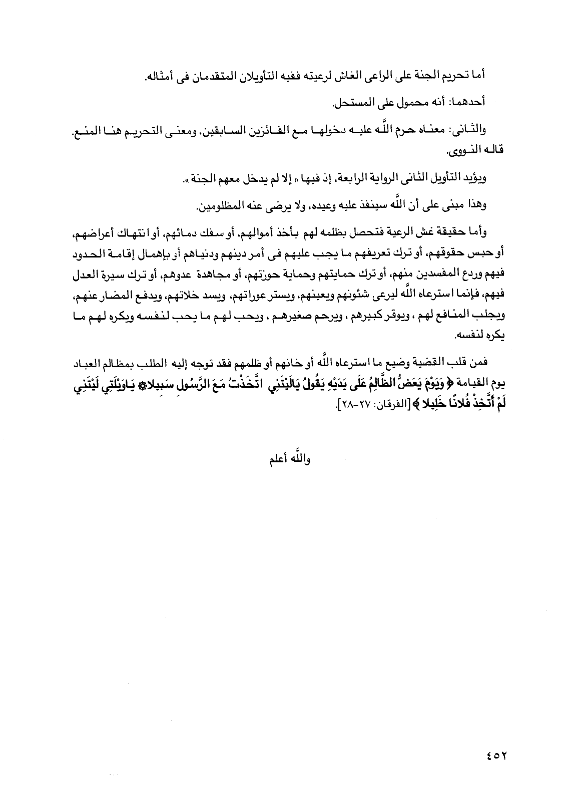 فمن قلب القضية وضيع ما استرعاه الله أو خانهم أو ظلمهم فقد توجه إليه الطلب بمظالم العباد يوم القيامة {ويوم يعض الظالم على يديه يقول يا ليتني اتخذت مع الرسول سبيلا يا ويلتي ليتني لم أتخذ فلانا خليلا} [الفرقان: 27 - 28].