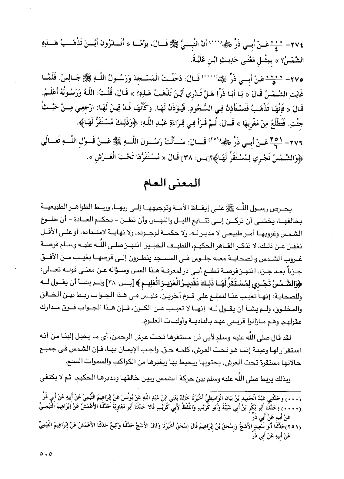274 - عن أبي ذر رضي الله عنه أن النبي صلى الله عليه وسلم قال، يوما "أتدرون أين تذهب هذه الشمس؟ " بمثل معنى حديث ابن علية.