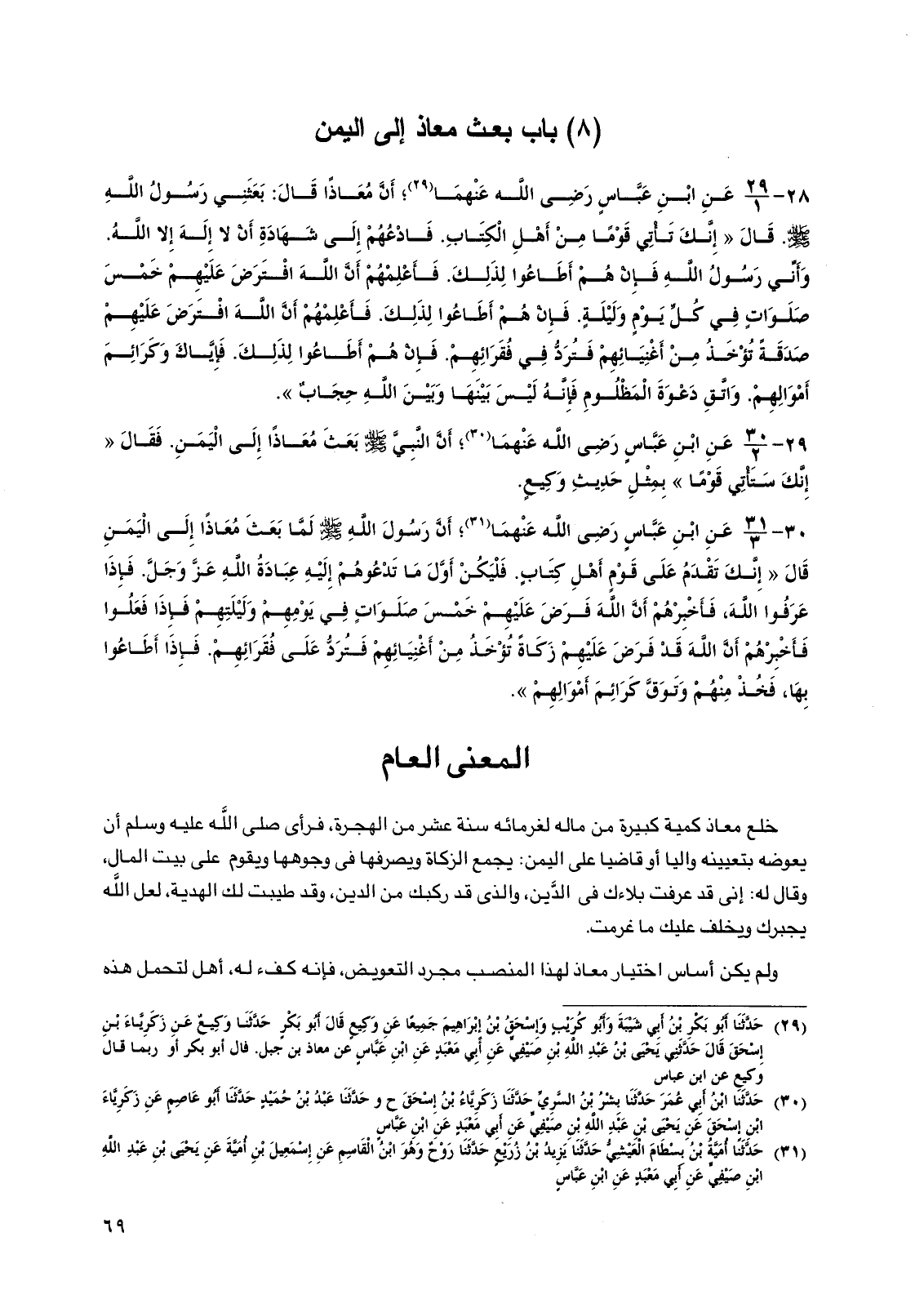29 - عن ابن عباس رضي الله عنهما، أن النبي صلى الله عليه وسلم بعث معاذا إلى اليمن. فقال "إنك ستأتي قوما" بمثل حديث وكيع.