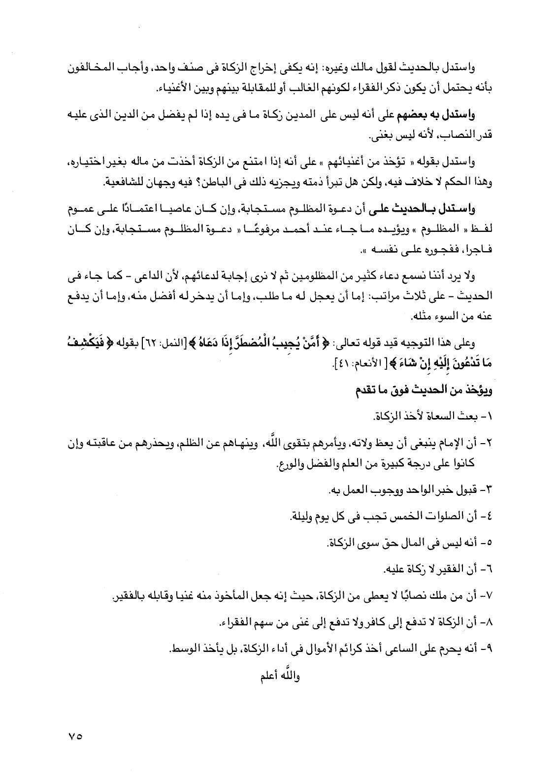 7 - أن من ملك نصابا لا يعطي من الزكاة، حيث إنه جعل المأخوذ منه غنيا وقابله بالفقير.
