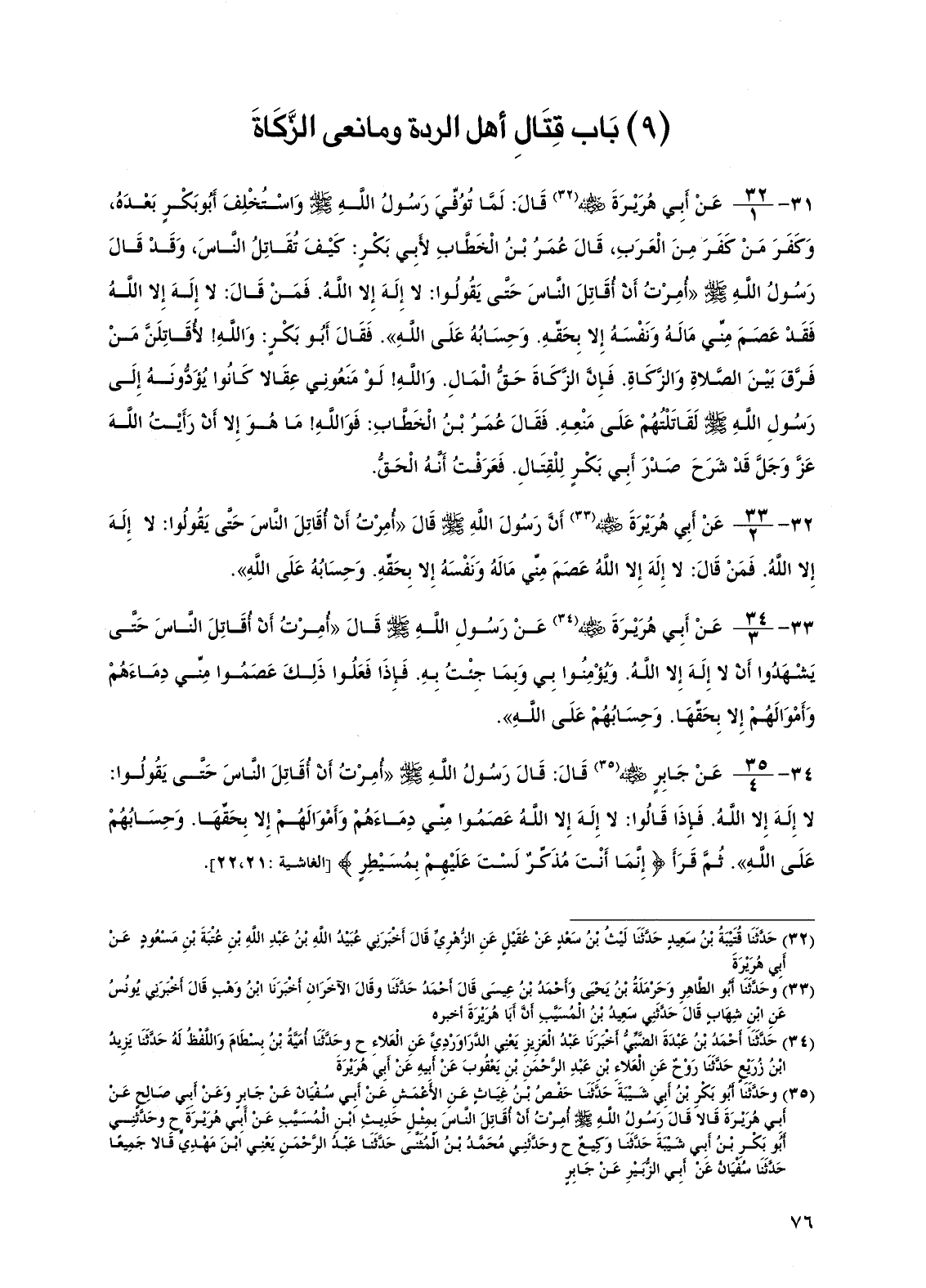 (9) باب قتال أهل الردة ومانعي الزكاة