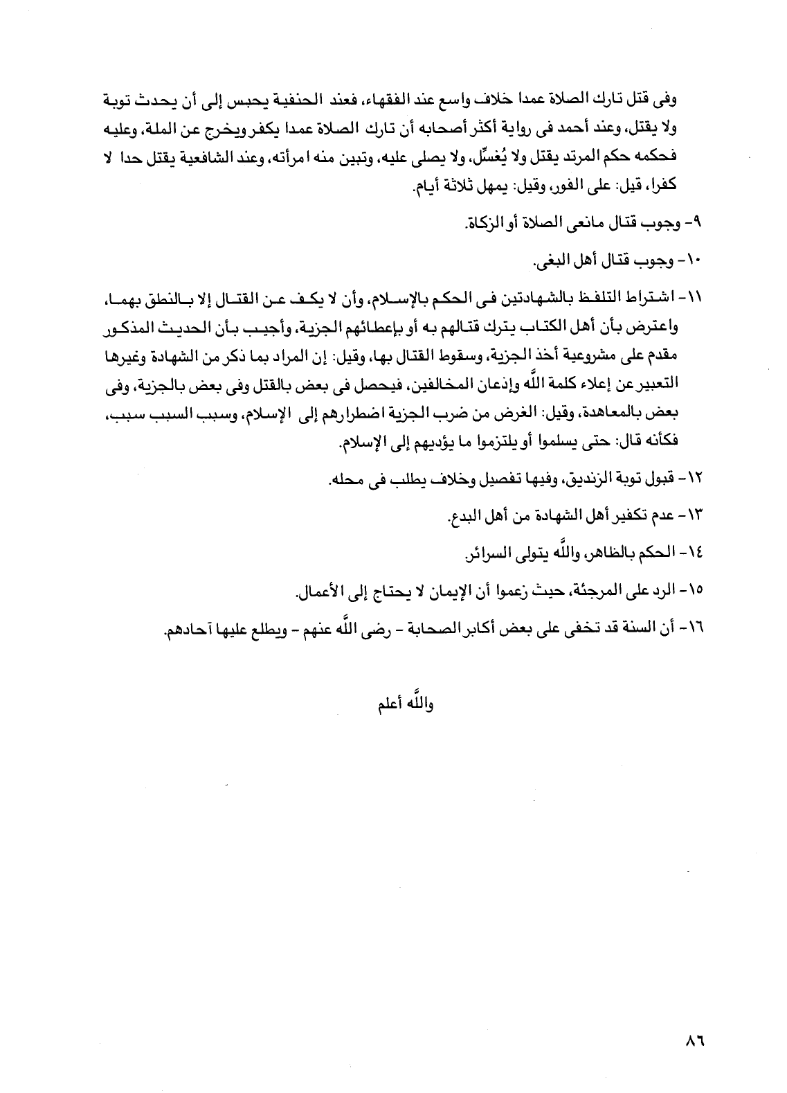 9 - وجوب قتال مانعي الصلاة أو الزكاة.