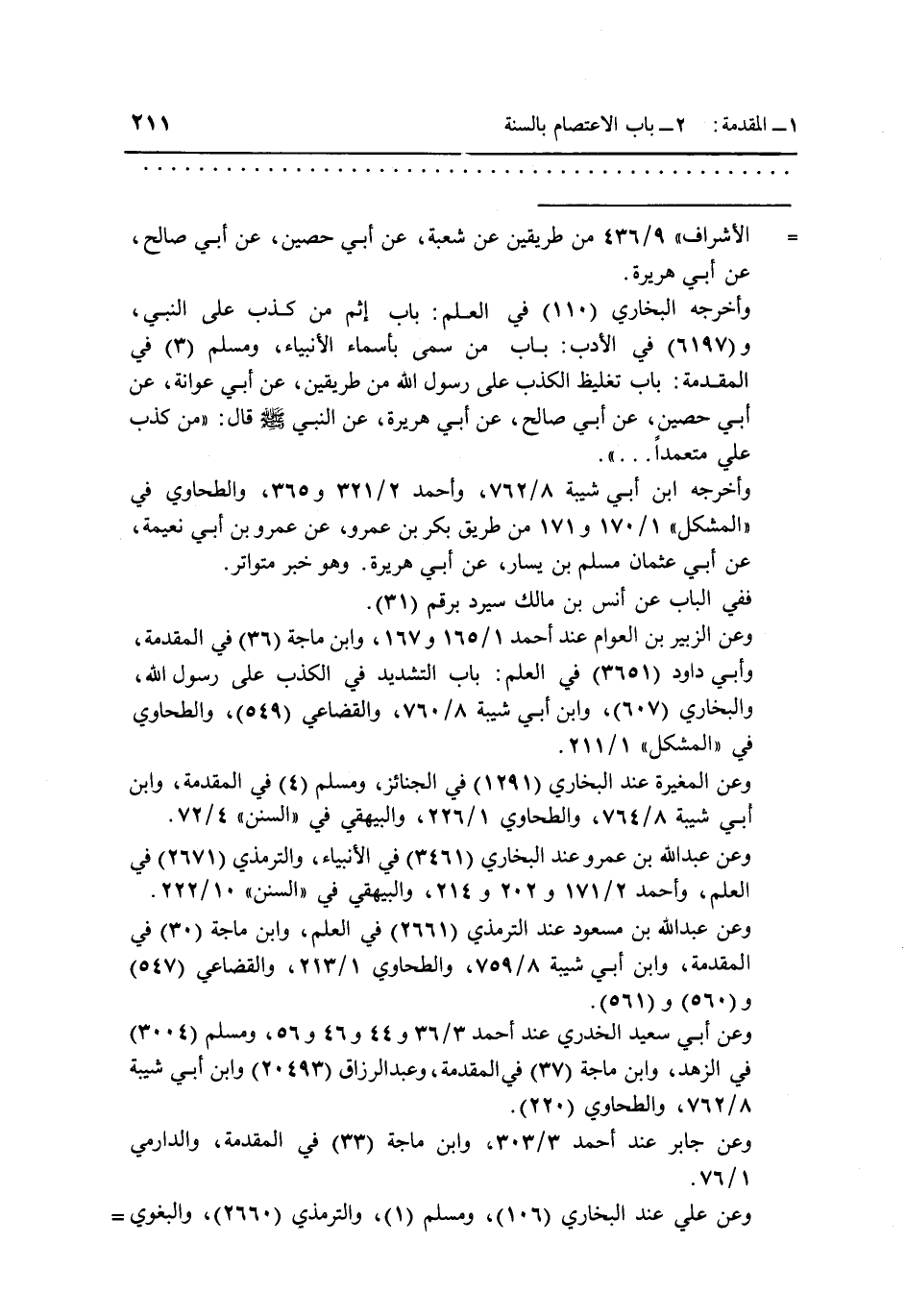 وعن علي عند البخاري "106"، ومسلم "1"، والترمذي "2660"، والبغوي "114"، والطيالسي "107" والطحاوي "209"، وابن ماجة "31" في المقدمة.