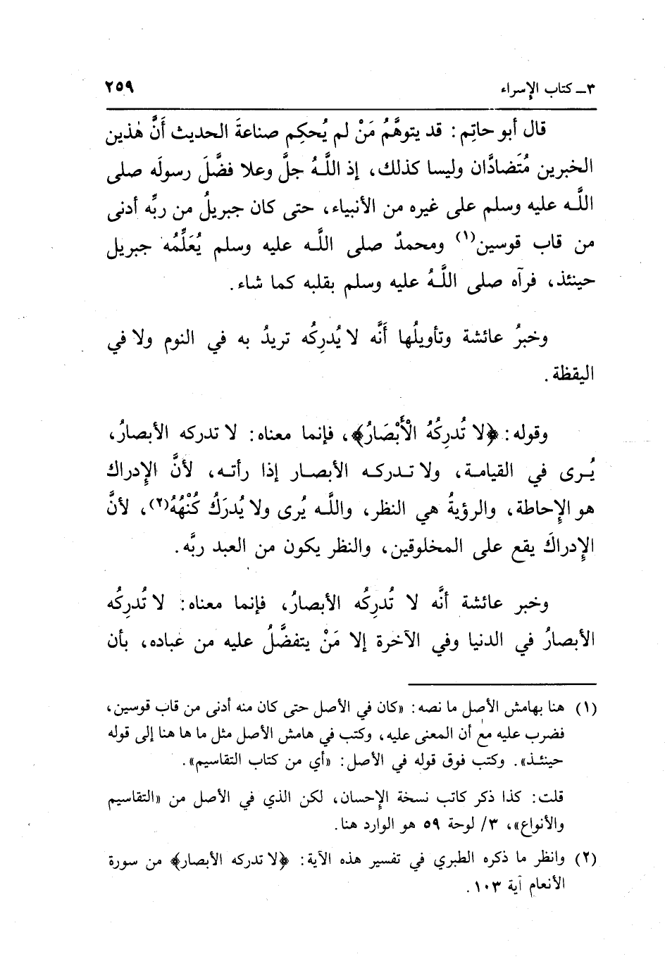 2 وانظر ما ذكره الطبري في تفسير هذه الآية: {لا تُدْرِكُهُ الْأَبْصَارُ} من سورة الأنعام آية 103.