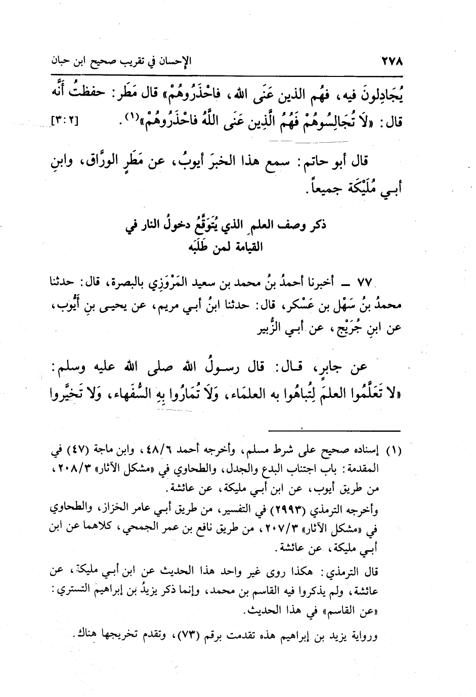 يُجَادِلُونَ فِيهِ فَهُمُ الَّذِينَ عَنَى اللَّهُ فَاحْذَرُوهُمْ" قَالَ مَطَرٌ: حَفِظْتُ أَنَّهُ قَالَ: "لَا تُجَالِسُوهُمْ فَهُمُ الَّذِينَ عَنَى اللَّهُ فَاحْذَرُوهُمْ1". [3:2]