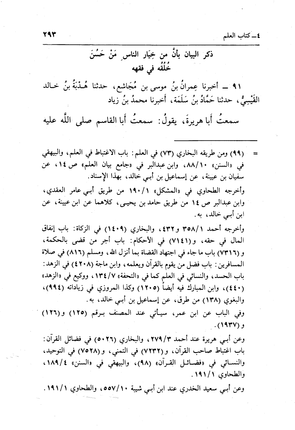= "99" ومن طريقه البخاري "73" في العلم: باب الاغتباط في العلم، والبيهقي في "السنن" 10/88، وابن عبد البر في "جامع بيان العلم" ص 14، عن سفيان بن عيينة عن إسماعيل بن أبي خالد، بهذا الإسناد.