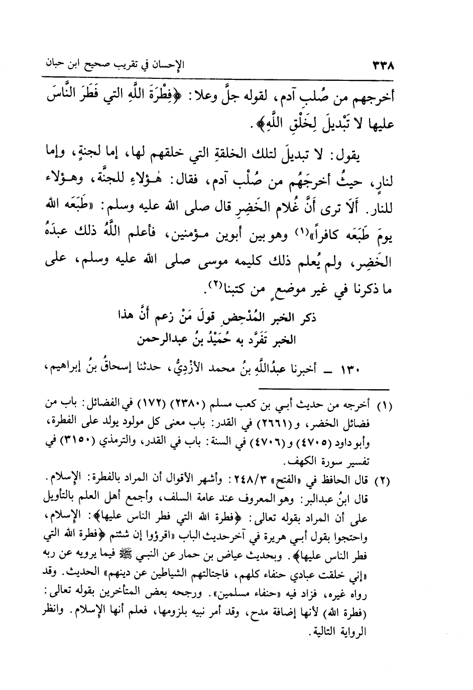 1 أخرجه من حديث أبي بن كعب مسلمٌ "2380" "172" في الفضائل: باب من فضائل الخضر، و"2661" في القدر: باب معنى كل مولود يولد على الفطرة، وأبو داود "4705" و"4706" في السنة: باب في القدر، والترمذي "3150" في تفسير سورة الكهف.