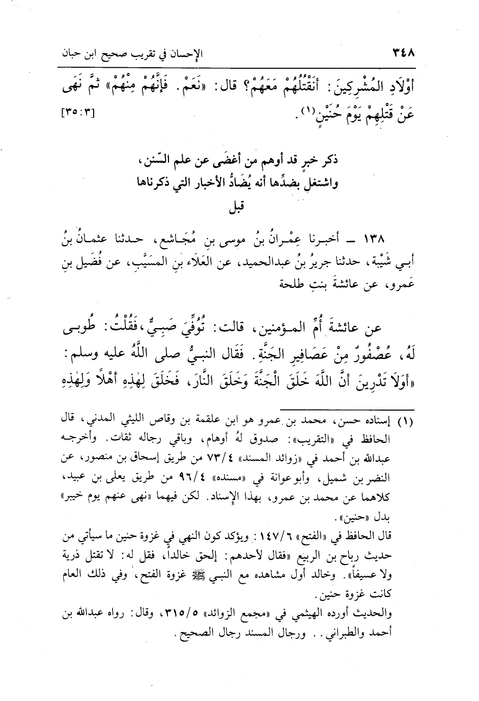 أَوْلَادِ الْمُشْرِكِينَ أَنَقْتُلُهُمْ مَعَهُمْ قَالَ: "نَعَمْ فَإِنَّهُمْ مِنْهُمْ" ثُمَّ نَهَى عَنْ قَتْلِهِمْ يَوْمَ حُنَيْنٍ1. [35:3]