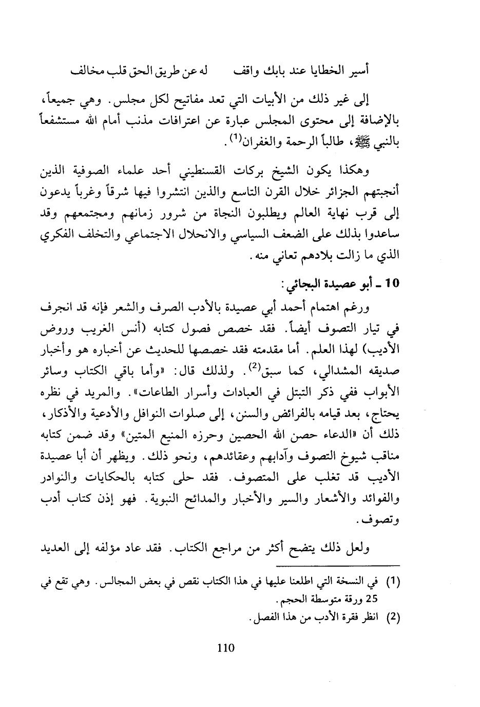 (¬1) في النسخة التي اطلعنا عليها في هذا الكتاب نقص في بعض المجالس. وهي تقع في 25 ورقة متوسطة الحجم.