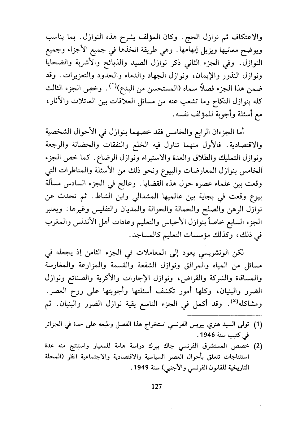 (¬2) خصص المستشرق الفرنسي جاك بيرك دراسة هامة للمعيار واستنتج منه عدة استنتاجات تتعلق بأحوال العصر السياسية والاقتصادية والاجتماعية انظر (المجلة التاريخية للقانون الفرنسي والأجنبي) سنة 1949.