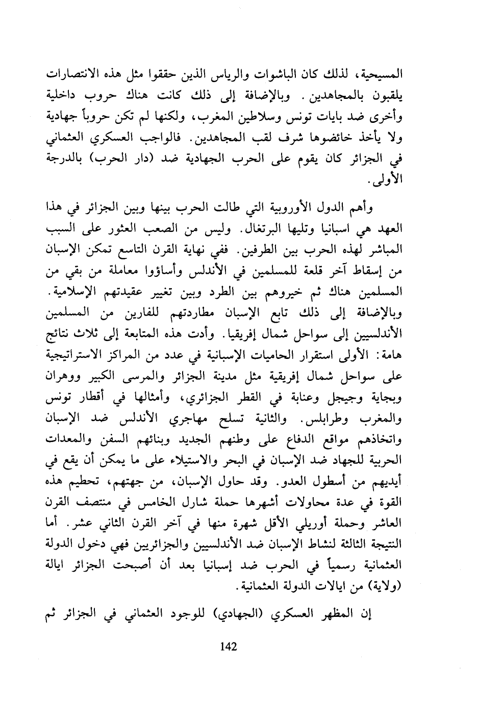 المسيحية، لذلك كان الباشوات والرياس الذين حققوا مثل هذه الانتصارات يلقبون بالمجاهدين. وبالإضافة إلى ذلك كانت هناك حروب داخلية وأخرى ضد بايات تونس وسلاطين المغرب، ولكنها لم تكن حروبا جهادية ولا يأخذ خائضوها شرف لقب المجاهدين. فالواجب العسكري العثماني في الجزائر كان يقوم على الحرب الجهادية ضد (دار الحرب) بالدرجة الأولى.