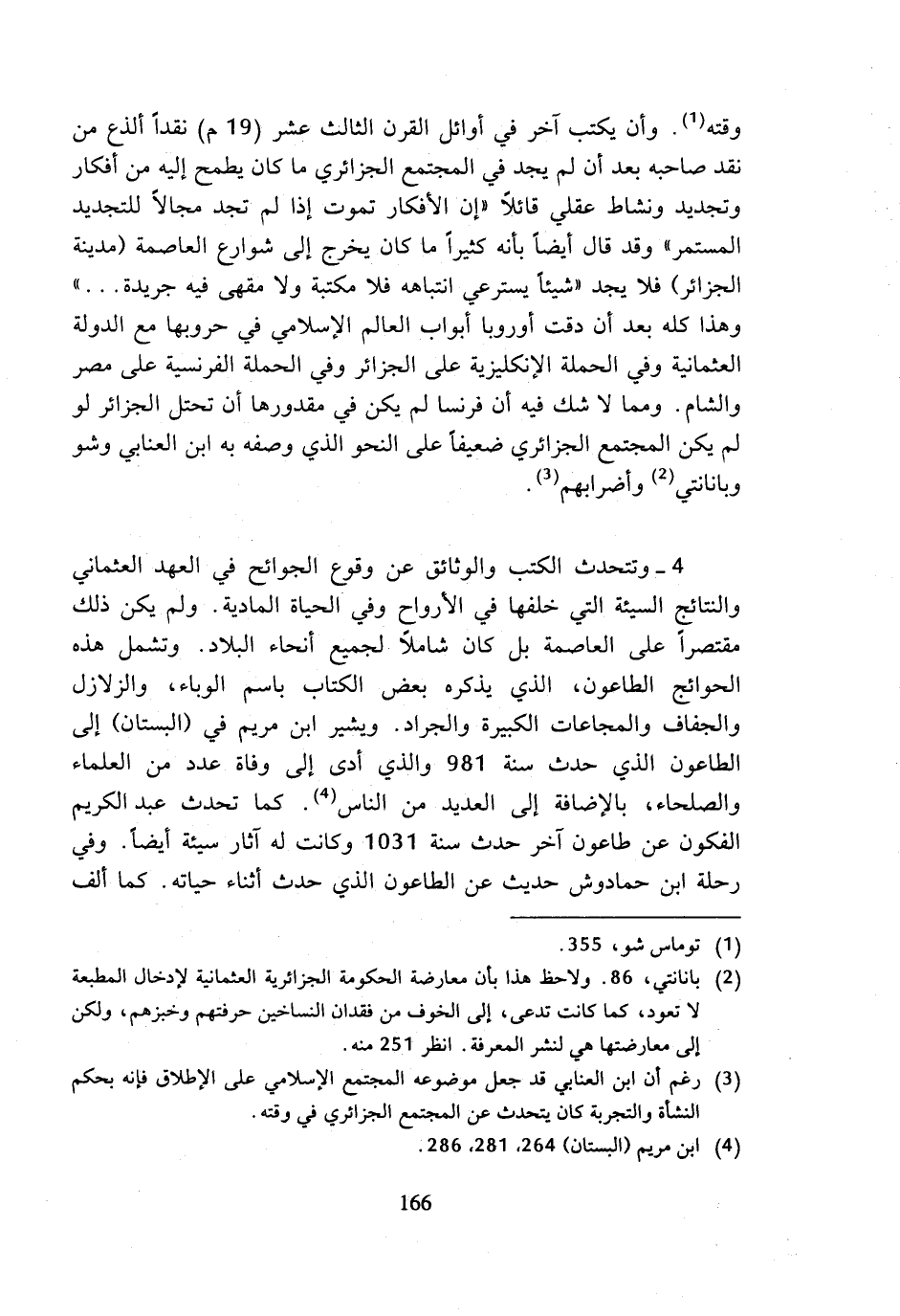 (¬2) بانانتي، 86. ولاحظ هذا بأن معارضة الحكومة الجزائرية العثمانية لإدخال المطبعة لا تعود، كما كانت تدعى، إلى الخوف من فقدان النساخين حرفتهم وخبزهم، ولكن إلى معارضتها هي لنشر المعرفة. انظر 251 منه.