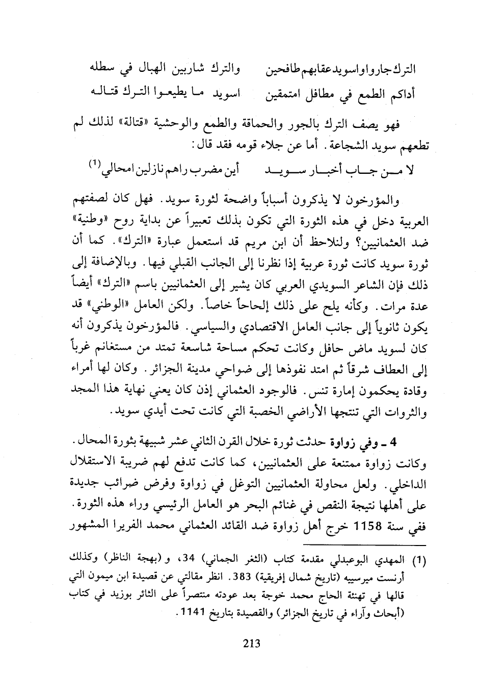 (¬1) المهدي البوعبدلي مقدمة كتاب (الثغر الجماني) 34، و (بهجة الناظر) وكذلك أرنست ميرسييه (تاريخ شمال إفريقية) 383. انظر مقالتي عن قصيدة ابن ميمون التي قالها في تهنئة الحاج محمد خوجة بعد عودته منتصرا على الثائر بوزيد في كتاب (أبحاث وآراء في تاريخ الجزائر) والقصيدة بتاريخ 1141.