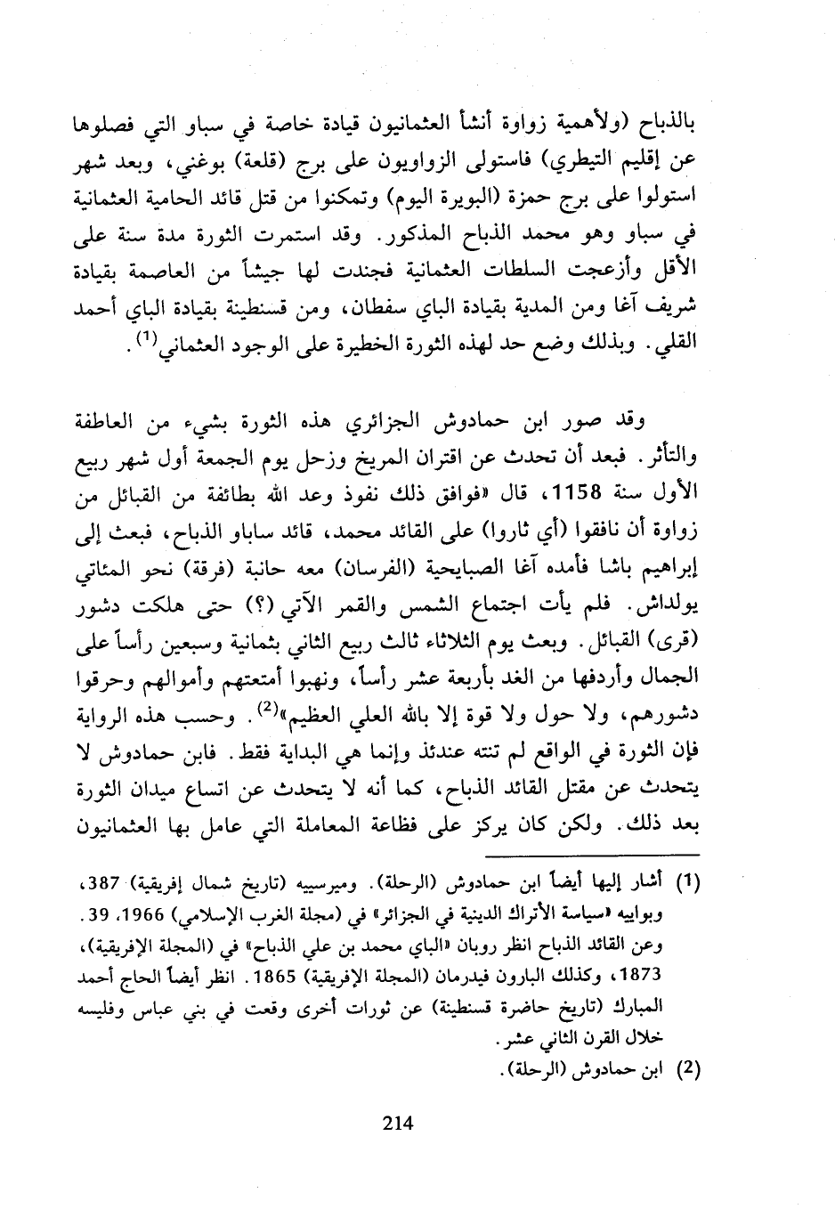 (¬1) أشار إليها أيضا ابن حمادوش (الرحلة). وميرسييه (تاريخ شمال إفريقية) 387، وبواييه (سياسة الأتراك الدينية في الجزائر) في (مجلة الغرب الإسلامي) 1966، 39.