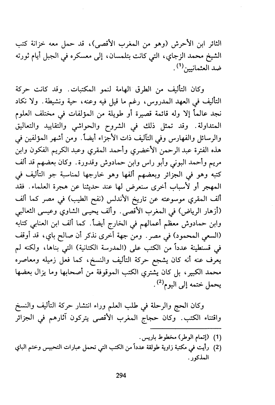 وكان الحج والرحلة في طلب العلم وراء انتشار حركة التأليف والنسخ واقتناء الكتب. وكان حجاج المغرب الأقصى يتركون آثارهم في الجزائر