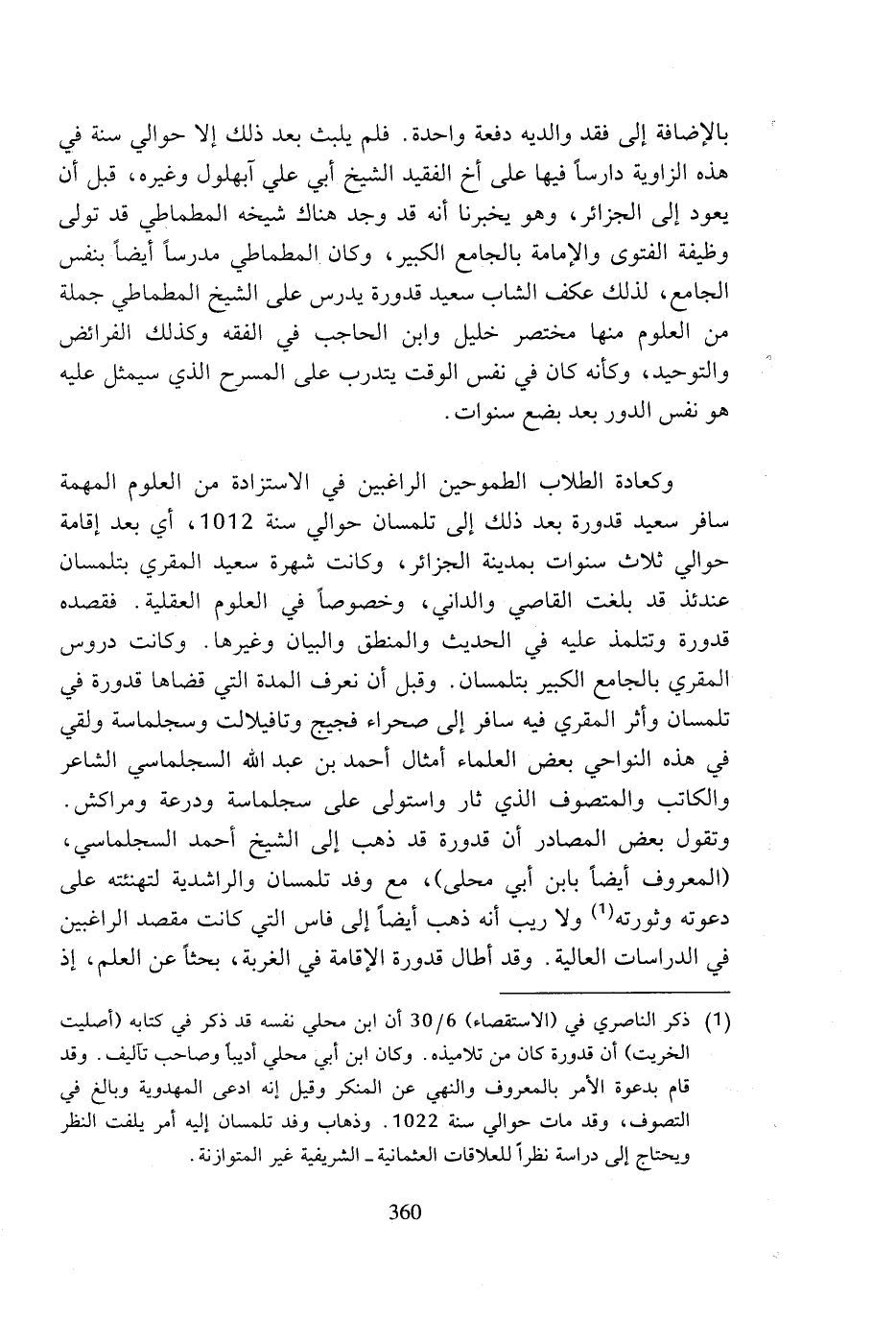 (¬1) ذكر الناصري في (الاستقصاء) 6/ 30 أن ابن محلي نفسه قد ذكر في كتابه (أصليت الخريت) أن قدورة كان من تلاميذه. وكان ابن أبي محلي أديبا وصاحب تآليف. وقد قام بدعوة الأمر بالمعروف والنهي عن المنكر وقيل إنه ادعى المهدوية وبالغ في التصوف، وقد مات حوالي سنة 1022. وذهاب وفد تلمسان إليه أمر يلفت النظر ويحتاج إلى دراسة نظرا للعلاقات العثمانية - الشريفية غير المتوازنة.