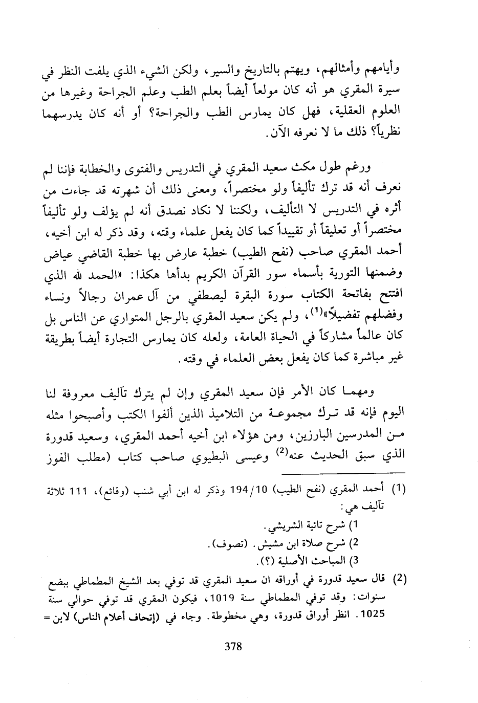 (¬2) قال سعيد قدورة في أوراقه ان سعيد المقري قد توفي بعد الشيخ المطماطي ببضع سنوات: وقد توفي المطماطي سنة 1019، فيكون المقري قد توفي حوالي سنة 1025. انظر أوراق قدورة، وهي مخطوطة. وجاء في (إتحاف أعلام الناس) لابن =