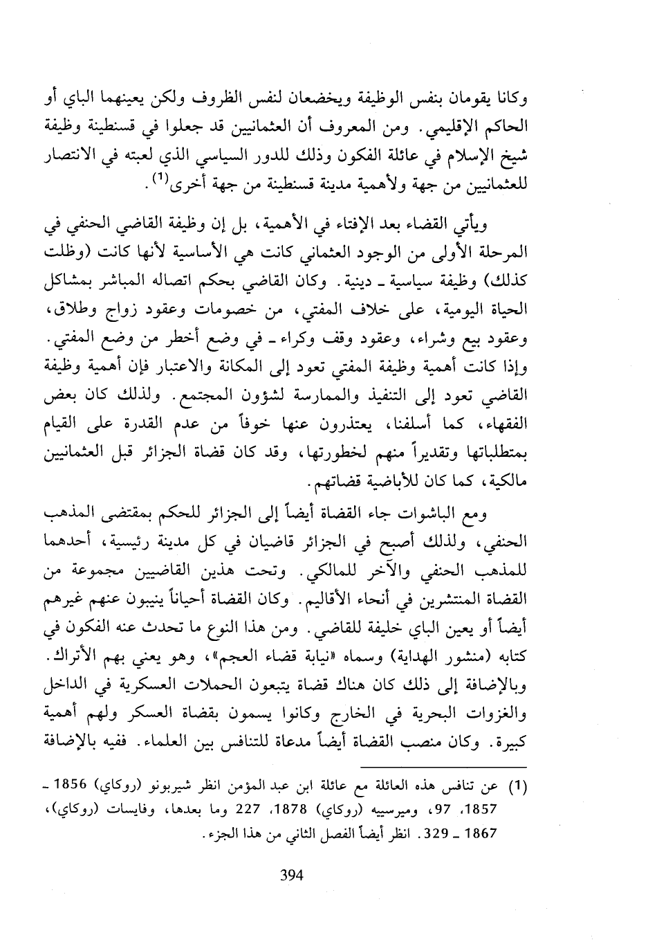 وكانا يقومان بنفس الوظيفة ويخضعان لنفس الظروف ولكن يعينهما الباي أو الحاكم الإقليمي. ومن المعروف أن العثمانيين قد جعلوا في قسنطينة وظيفة شيخ الإسلام في عائلة الفكون وذلك للدور السياسي الذي لعبته في الانتصار للعثمانيين من جهة ولأهمية مدينة قسنطينة من جهة أخرى (¬1).