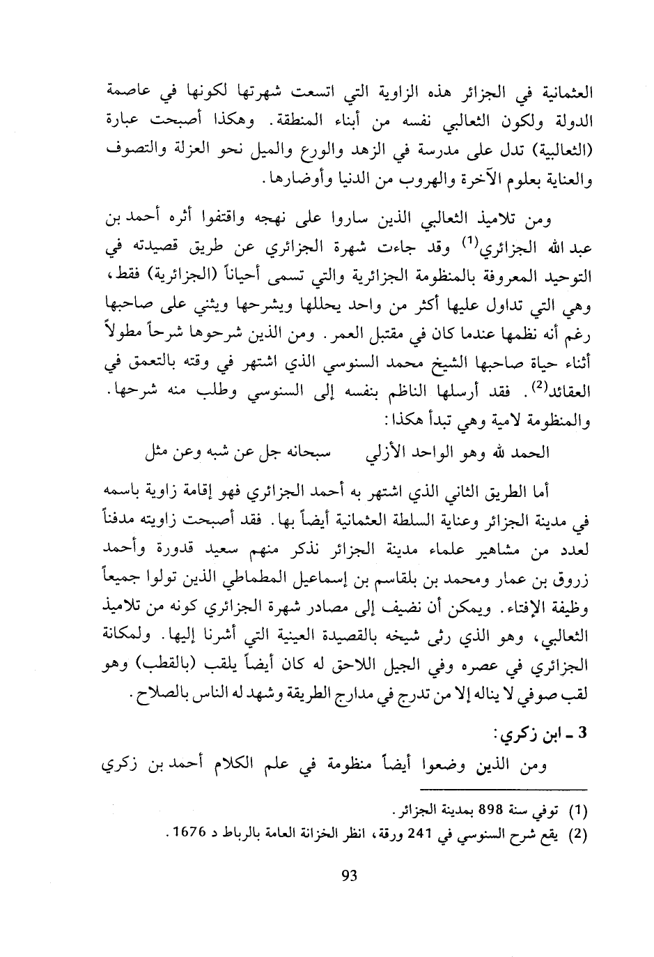 ومن الذين وضعوا أيضا منظومة في علم الكلام أحمد بن زكري
