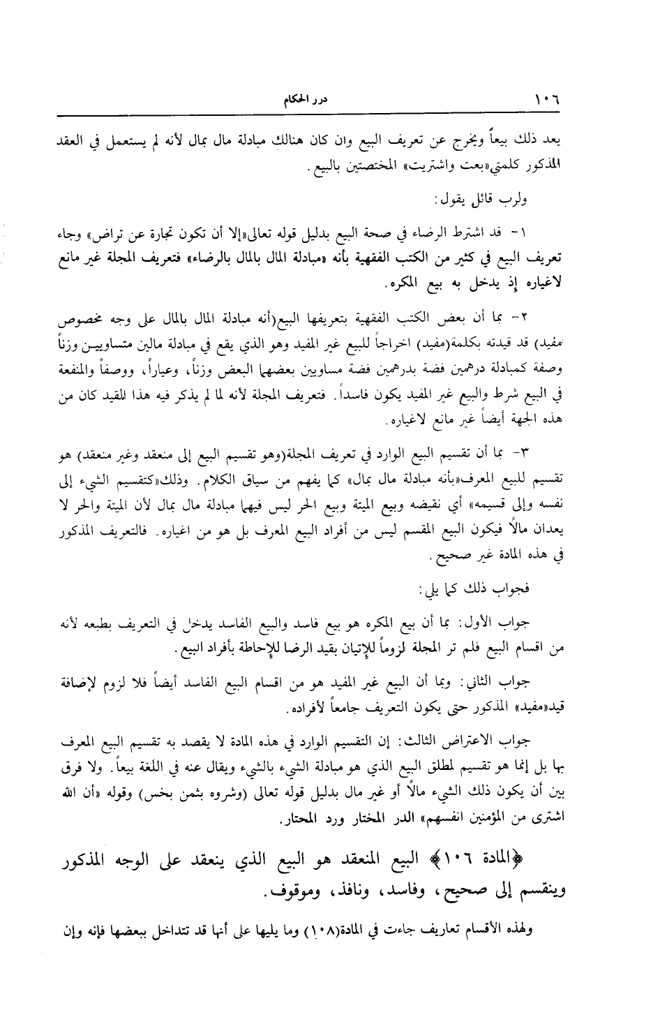 [ (الْمَادَّةُ 106) الْبَيْعُ الْمُنْعَقِدُ]