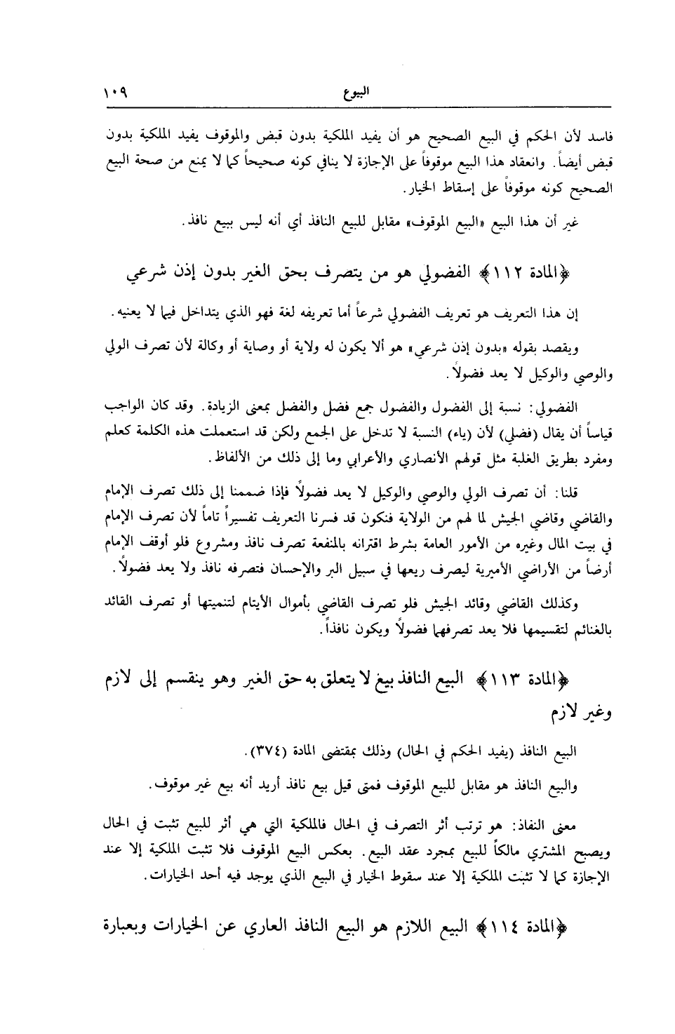 [ (الْمَادَّةُ 113) الْبَيْعُ النَّافِذُ]